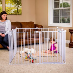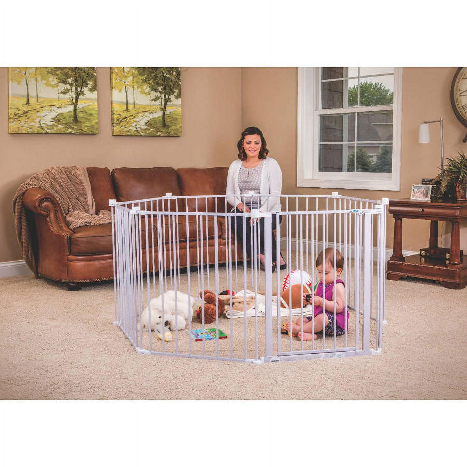 - Features: Super Wide baby gate and play yard, metal