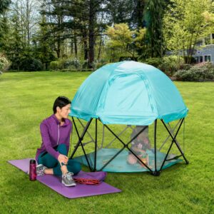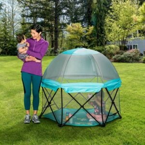 Regalo My Play Deluxe Portable Play Yard Indoor and Outdoor, Full Canopy, Washable, Aqua, 6-Panel, Unisex