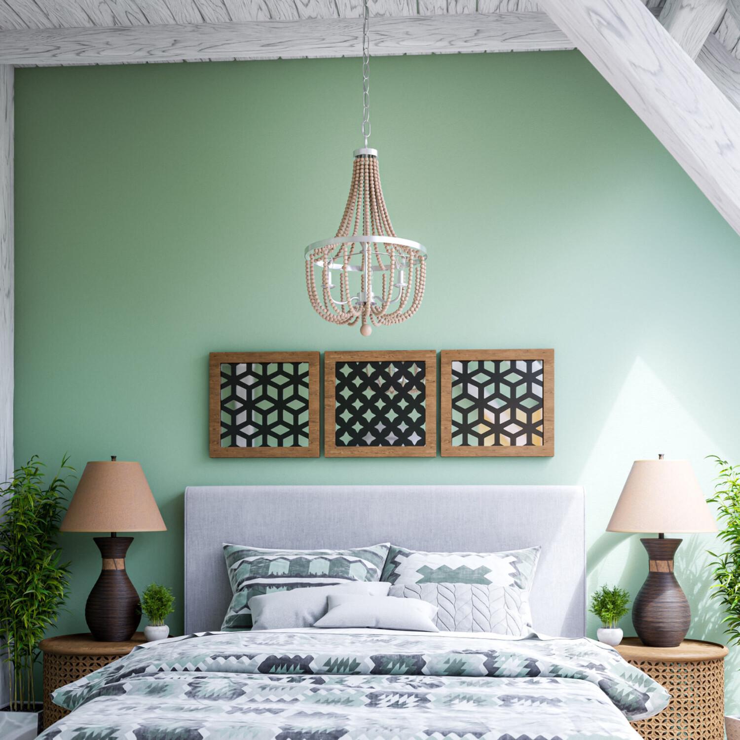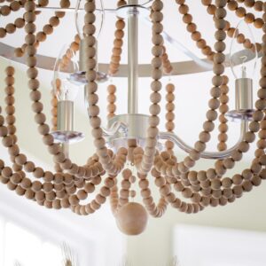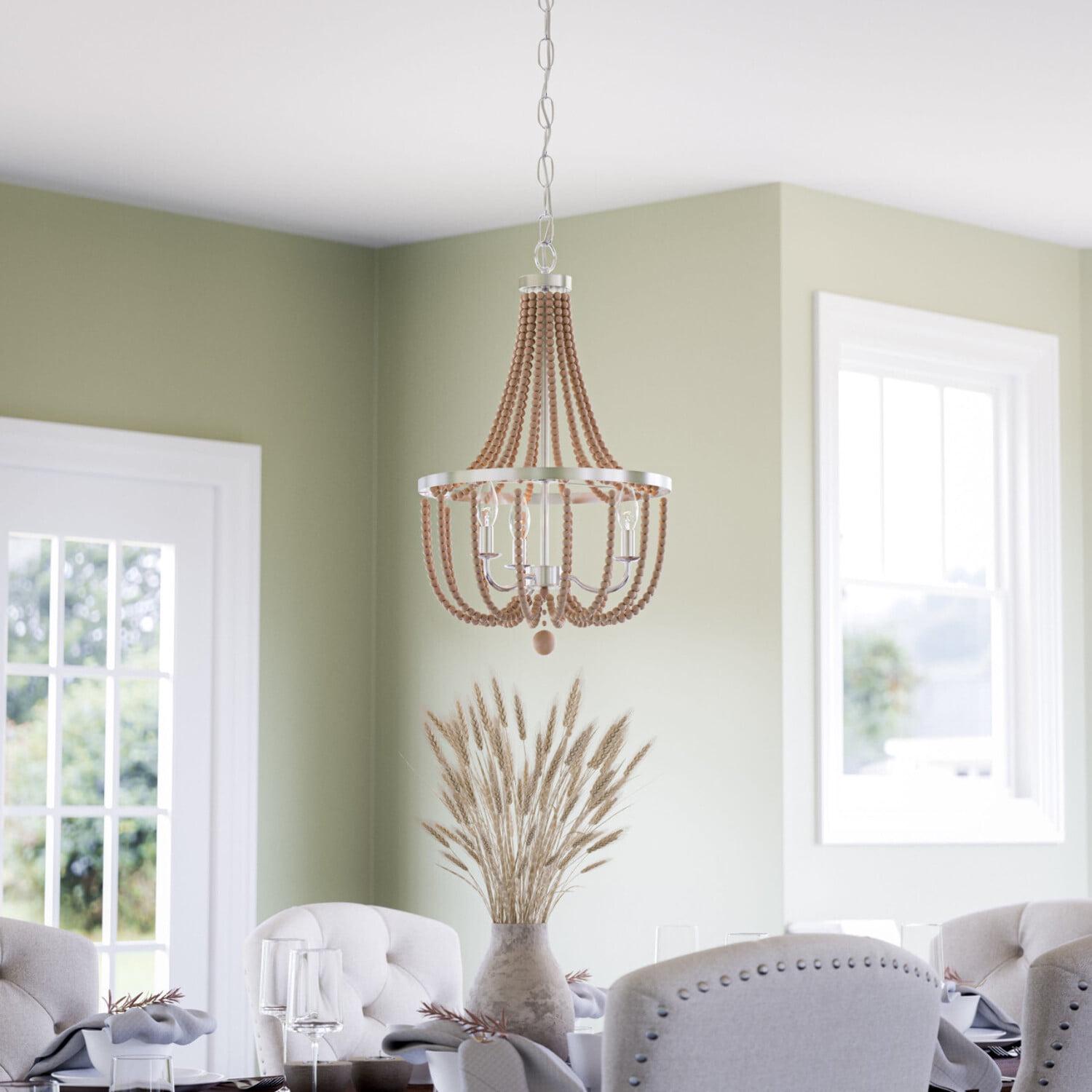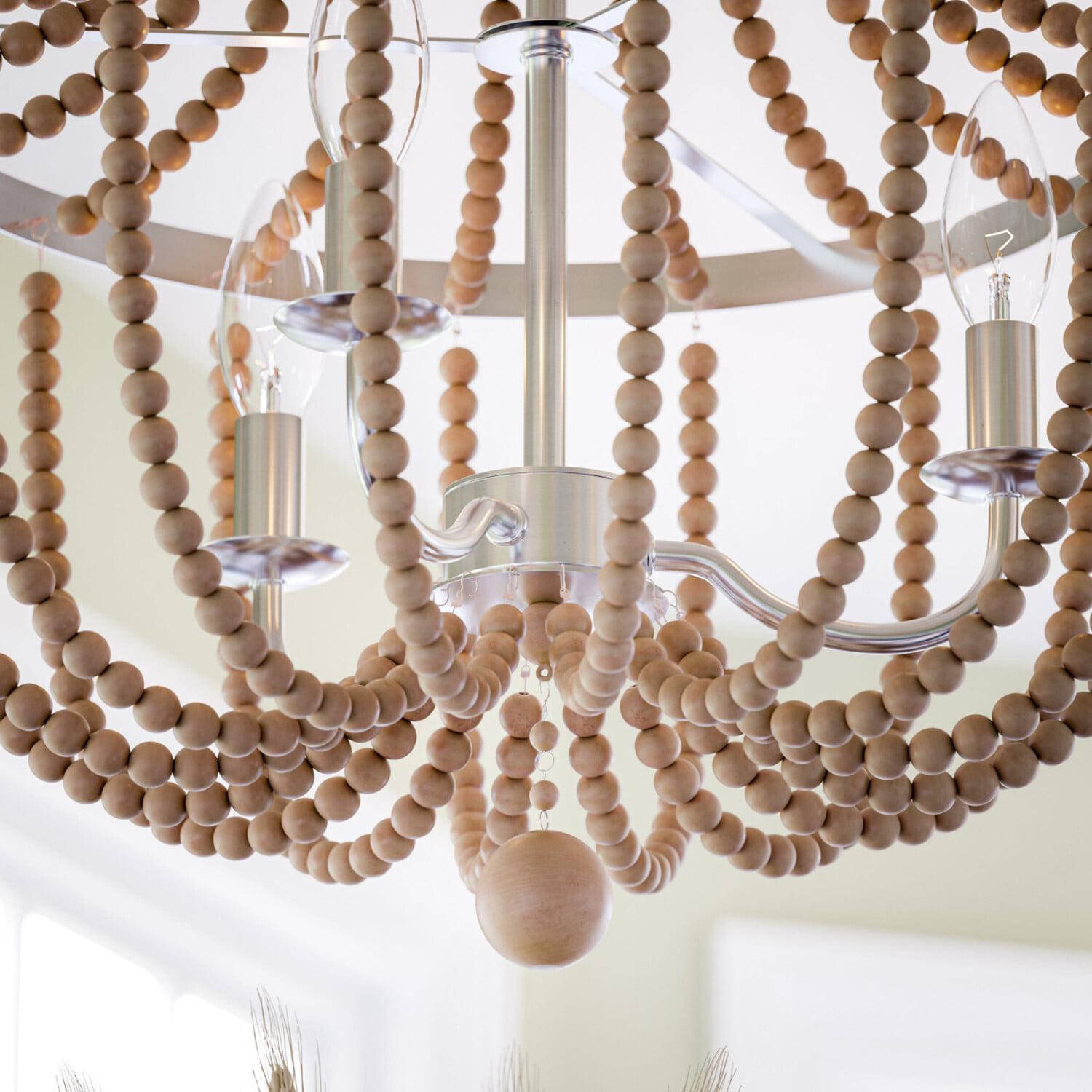 Dramatic, elegant chandeliers with a natural modern twist this beaded chandelier features a contemporary brushed steel finish paired with natural wood finished bead details for a bohemian look that really pops in nearly any environment. These beaded strands are elegantly draped over a round brushed steel frame, enclosing three candelabra bulbs and finished with a large wood bead drop in the center. Perfect for those looking for an eclectic centerpiece for their bohemian or modern farmhouse dining room, this 3 light chandelier includes mounting hardware, electrical wire and easy step-by-step instructions for a quick and easy installation. Suspend your new chandelier in your dining room, entryway, or bedroom over interesting placement options over a rustic bed, or in cozy living rooms with patchworked oriental rug just like you, this chandelier is unique. From the free flow of wooden beads to the soothing earthly tone of the brushed steel finish inner frame, this 3-light chandelier is full of life and will help shine a light on your chill and carefree design philosophy.