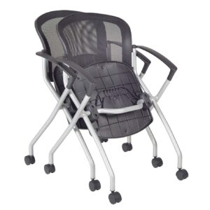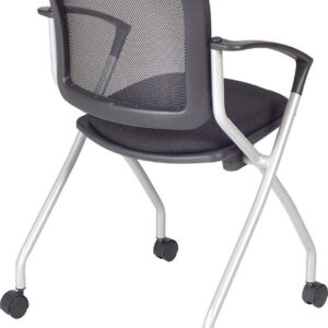Cadence nesting chairs can take you anywhere. A breathable mesh back conforms to users’ needs and the seat flips up to provide a unique nesting option. The stylish silver base features four casters for easy mobility and the seat is upholstered with a lasting black fabric. The Cadence looks great in sets and is perfect for large training rooms, labs, classrooms, cafes or waiting rooms. All Regency chairs are backed by a 5-year limited manufacturer’s warranty on chair bases and frames and a 2-year limited manufacturer’s warranty on chair mechanisms and upholstery.