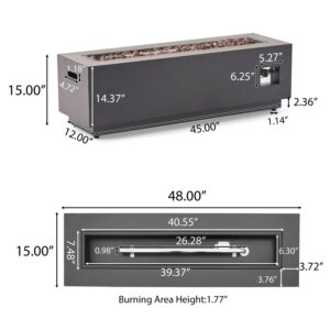 Reign Outdoor Rectangular Iron Gas Fire Pit , Dark Grey