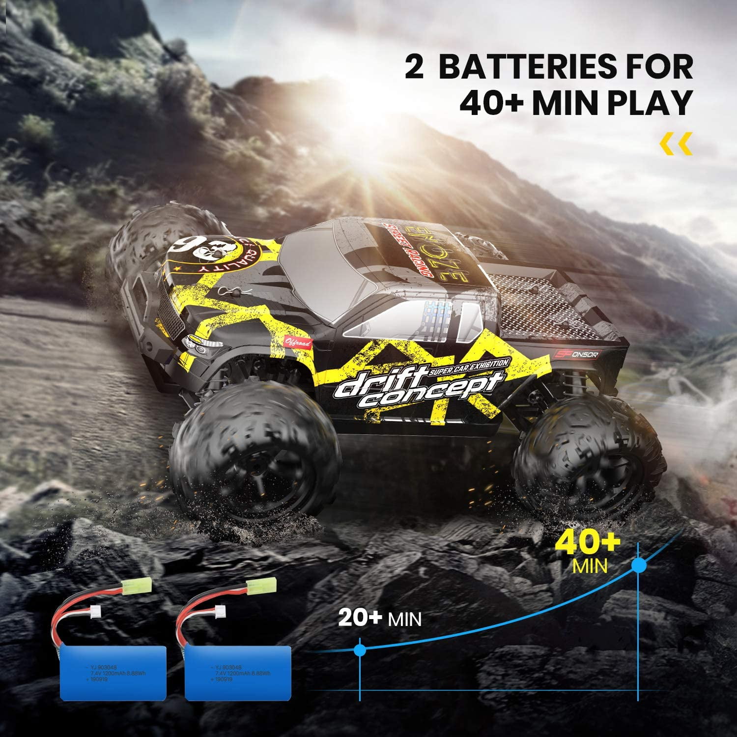 JoyStone Brushless RC Cars for Adults Fast 40+ MPH, Hobby Electric Powered High Speed RC Truck, 4×4 All Terrain Offroad with 2 Batteries & Shells