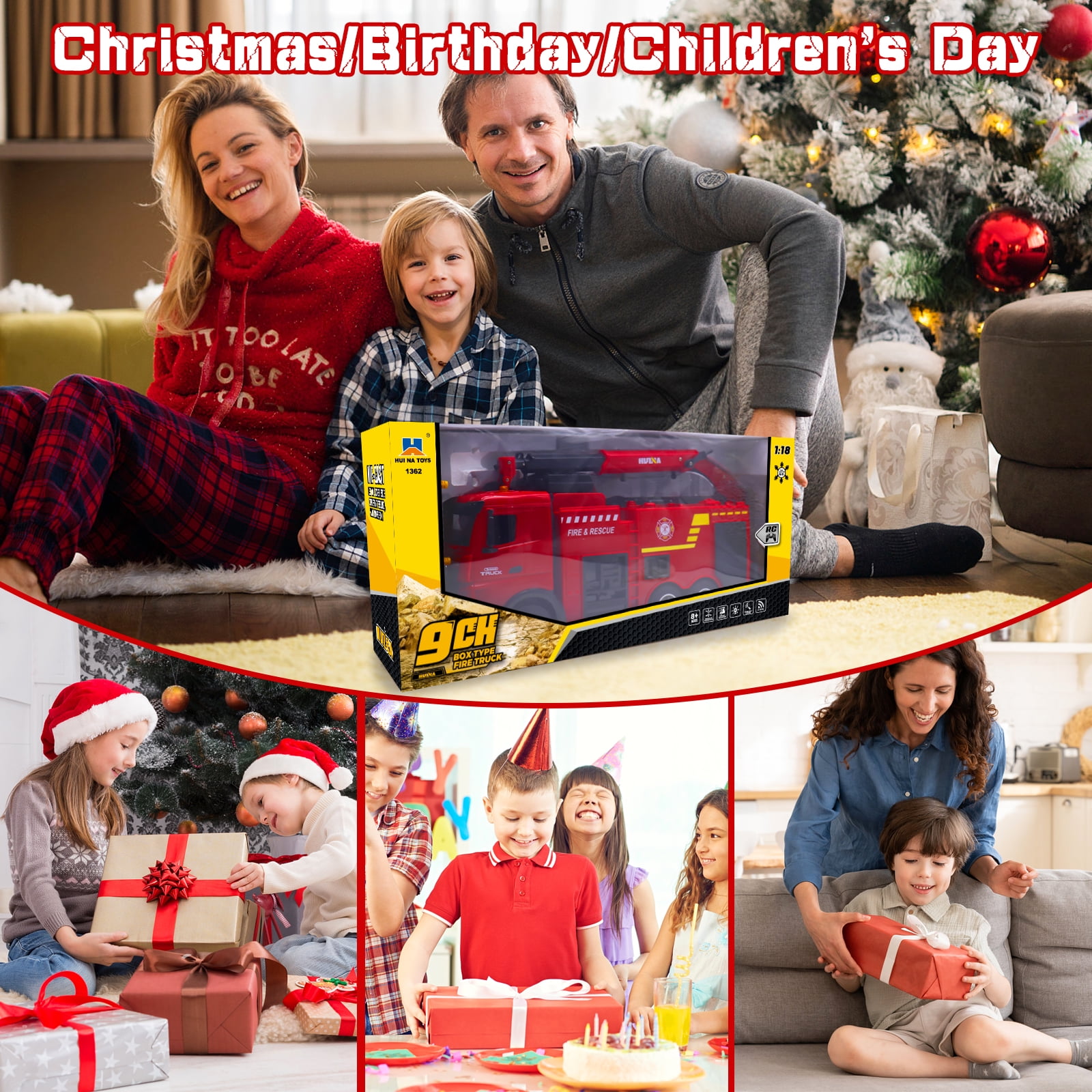 Remote Control Fire Truck, 9 Channel RC Rescue Firetruck with Water Spraying Pump and Lights Sounds, RC Crane RC Truck Toys for Kids Boys Gift