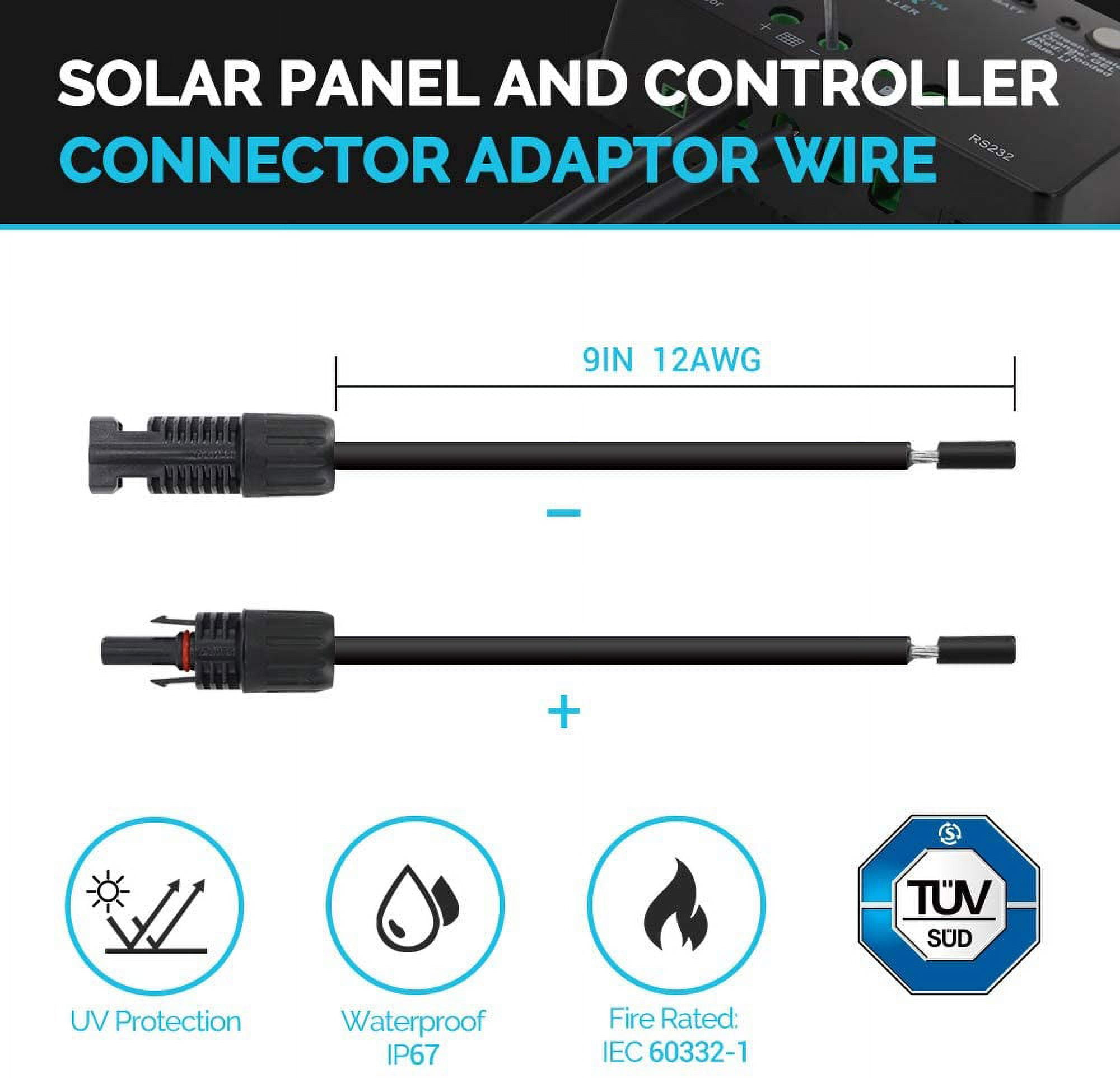 Two Renogy 100-Watt monocrystalline solar panels can be connected in parallel by a pair of branch connectors. The charge controller has been upgraded to Renogy’ s new 30A PWM Negative Ground Charge Controller — the Renogy Wanderer. The system can be extended up to 400-watt in parallel connection. Negative grounding controller ensures the broader off grid applications and safety, especially to be used on a vehicle which has battery negative on the chassis. 25-year transferable power output warranty on panels and 1-year warranty on rest of the kit components