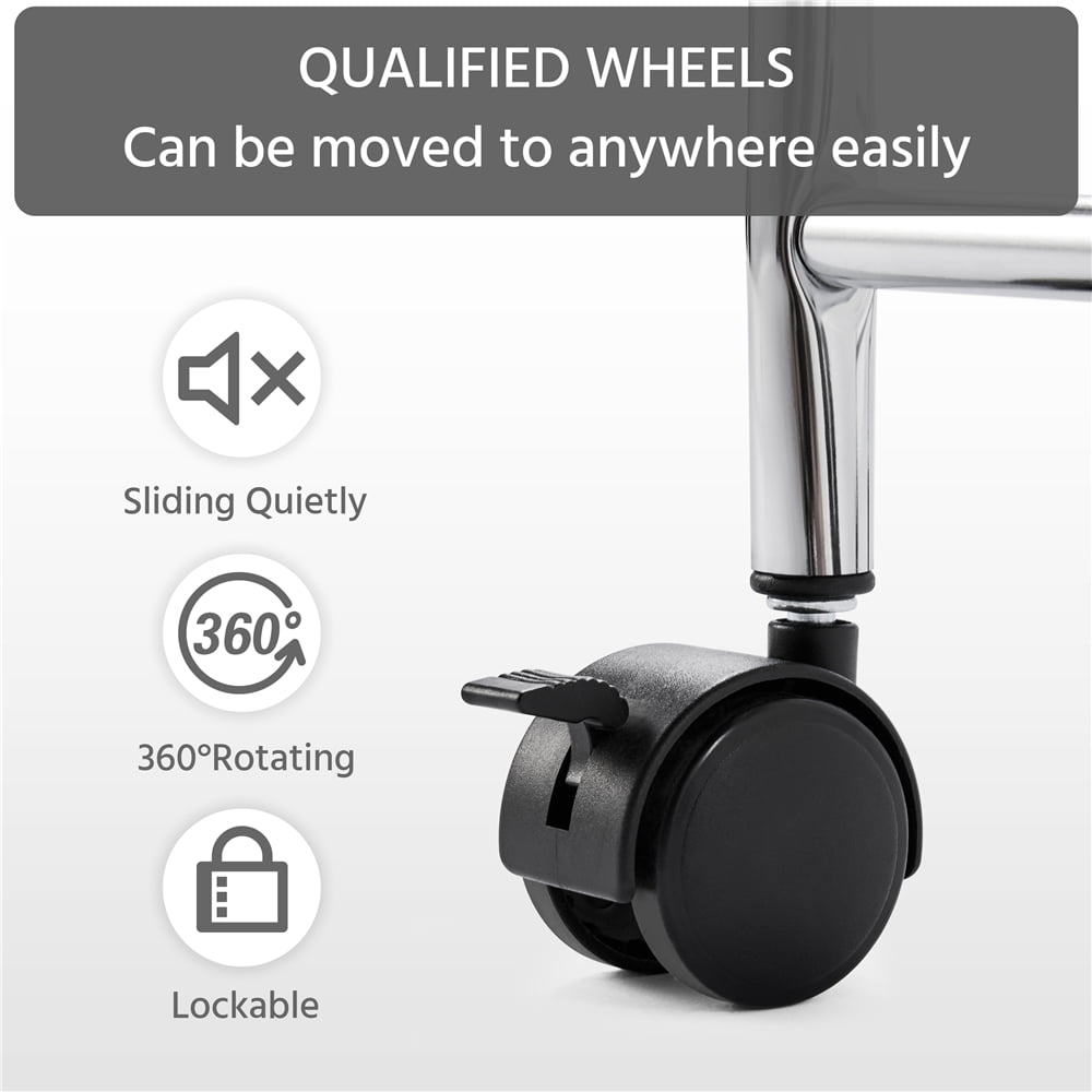 This 10-drawer storage trolley is arranged on 4 360° wheels, wherein, 2 of them are lockable, ensuring both flexibility and stability. The smart design of the 10 vertically aligned drawers makes full use of limited space, allowing users to store different items separately. Besides, each of the drawers can be removed separately, therefore, you can use them independently as single storage boxes or install them back after organization.