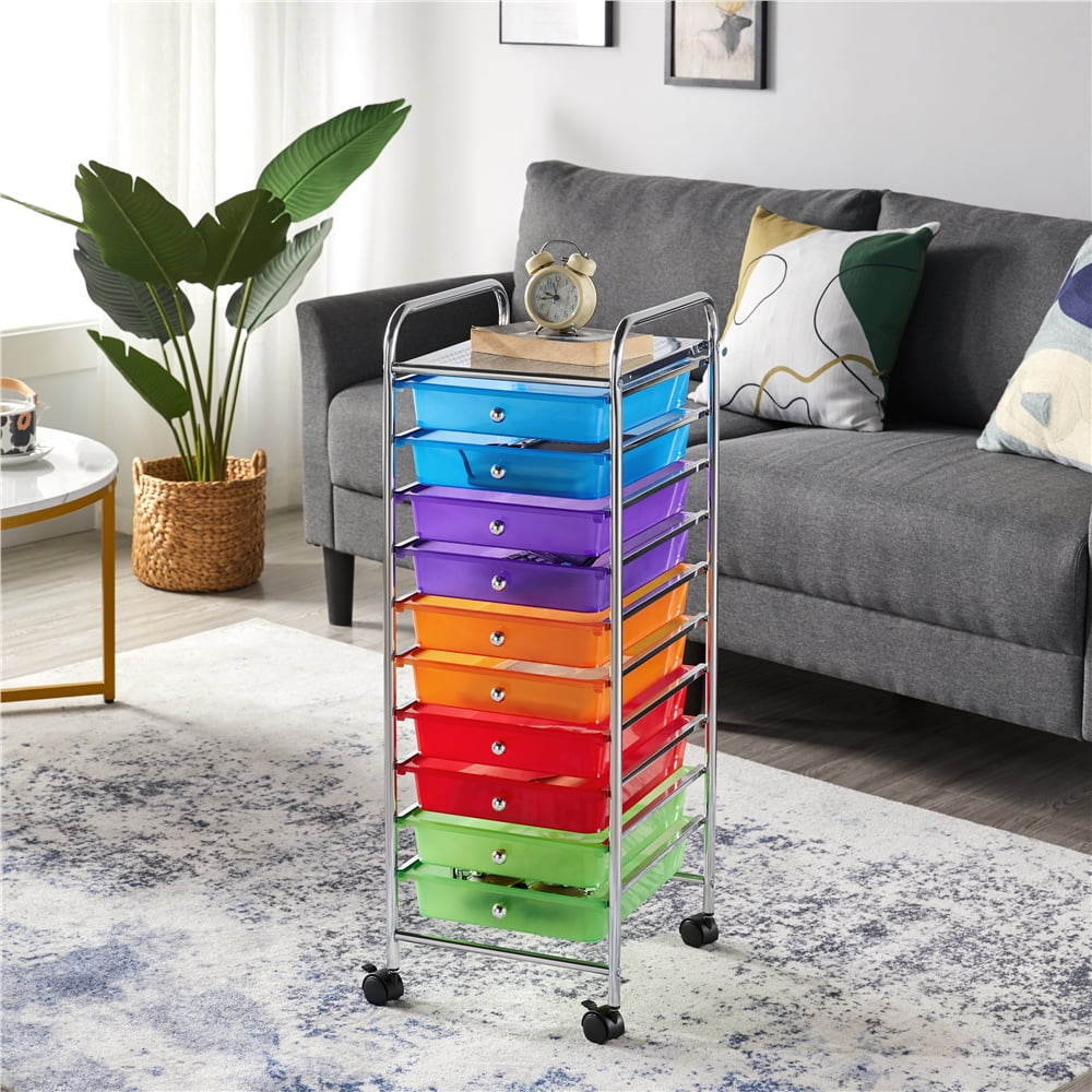 Renwick 10 Drawer Rolling Storage Cart Home Office Organizer Cart with Wheels, Multi-color