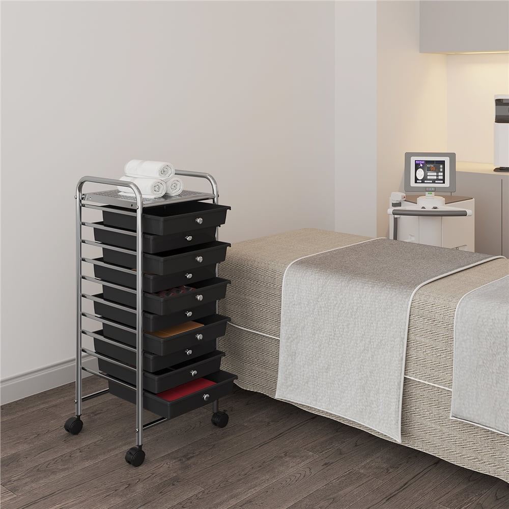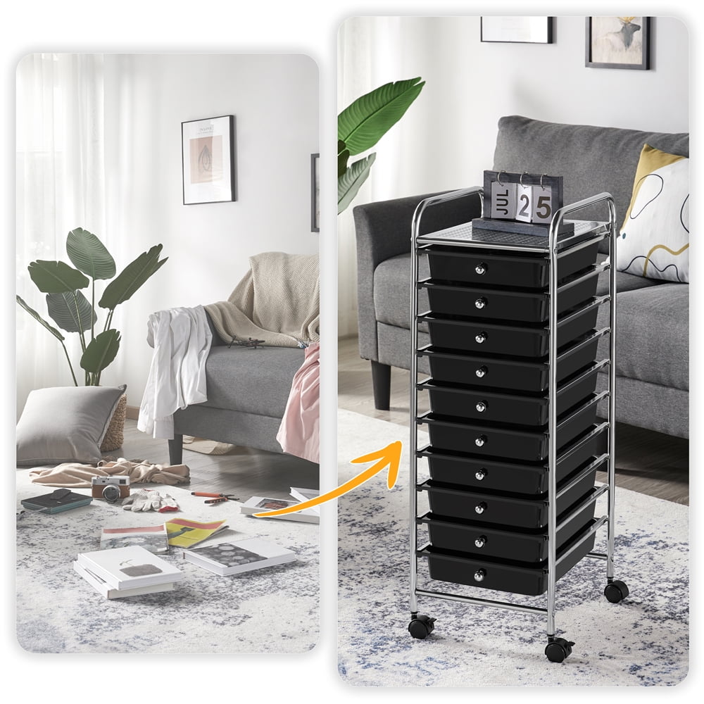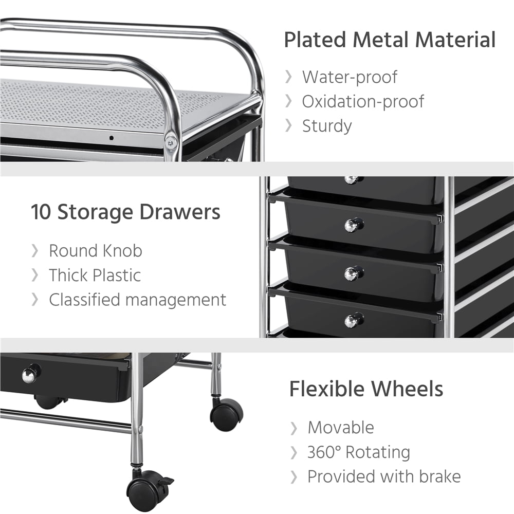 Renwick 10 Drawer Rolling Storage Cart Organizer with Lockable Wheels, Black