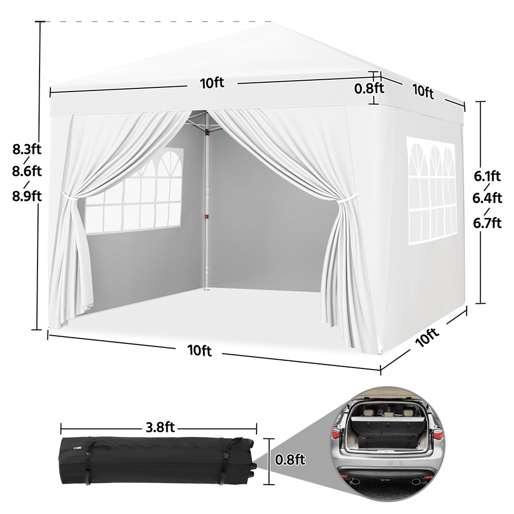 - Renwick 10×10 ft Pop Up Canopy Tent with 4 Sidewalls, White: