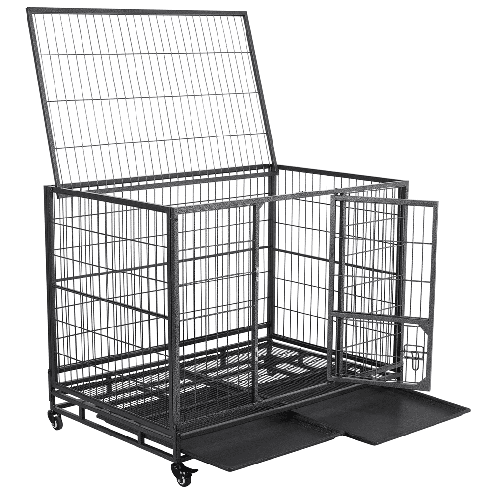 Easyfashion 43 inch Heavy Duty Metal Rolling Dog Cage Kennel,Black