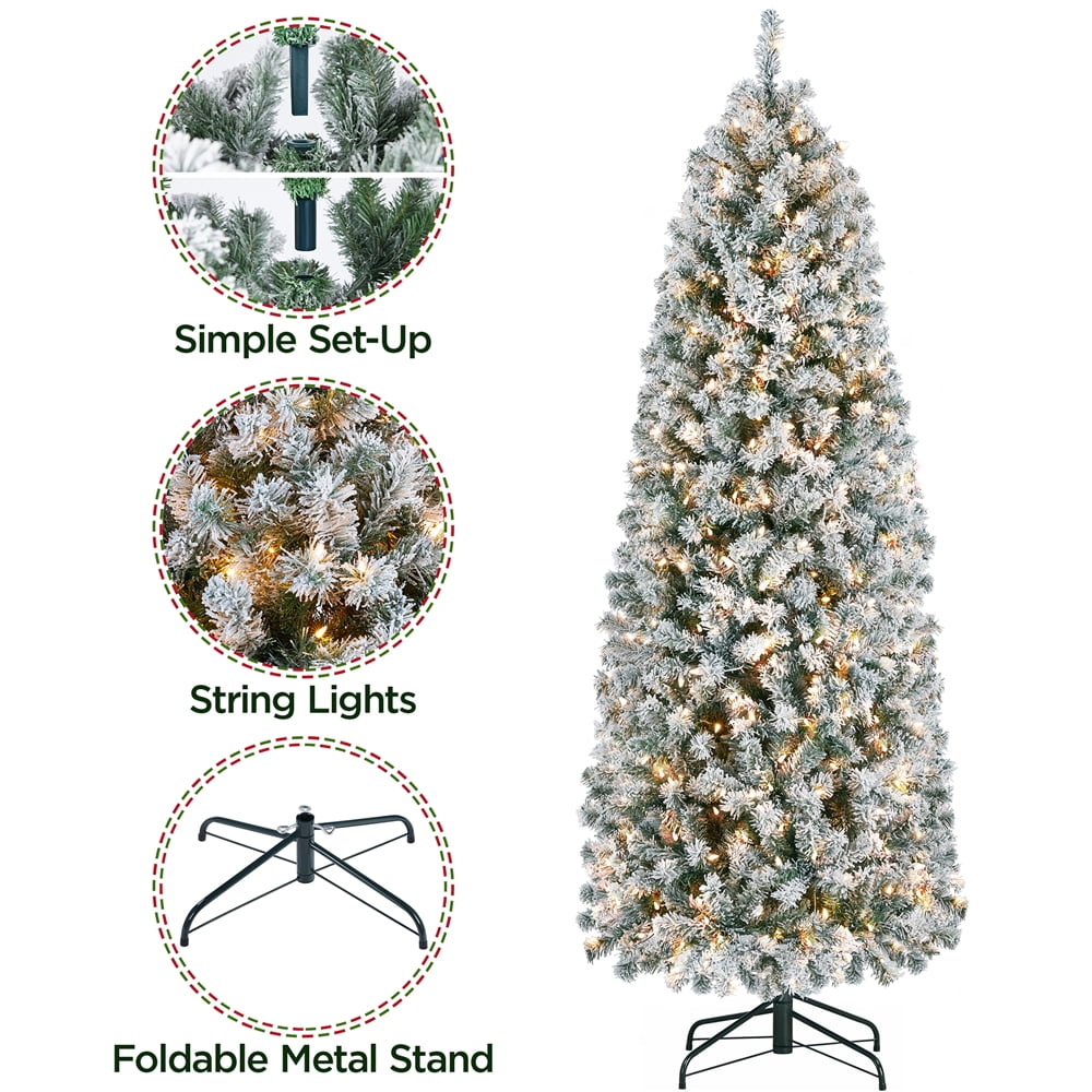 Renwick 6ft Prelit Flocked Pencil Christmas Tree with Foldable Stand, Green