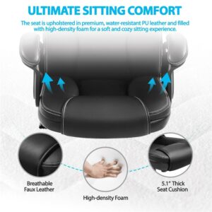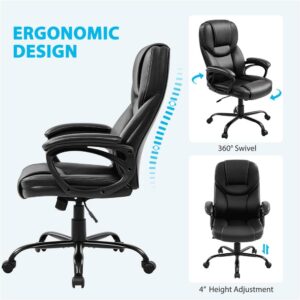 Renwick Faux Leather Swivel Office Chair with Ergonomic High Back for Home Office, Black