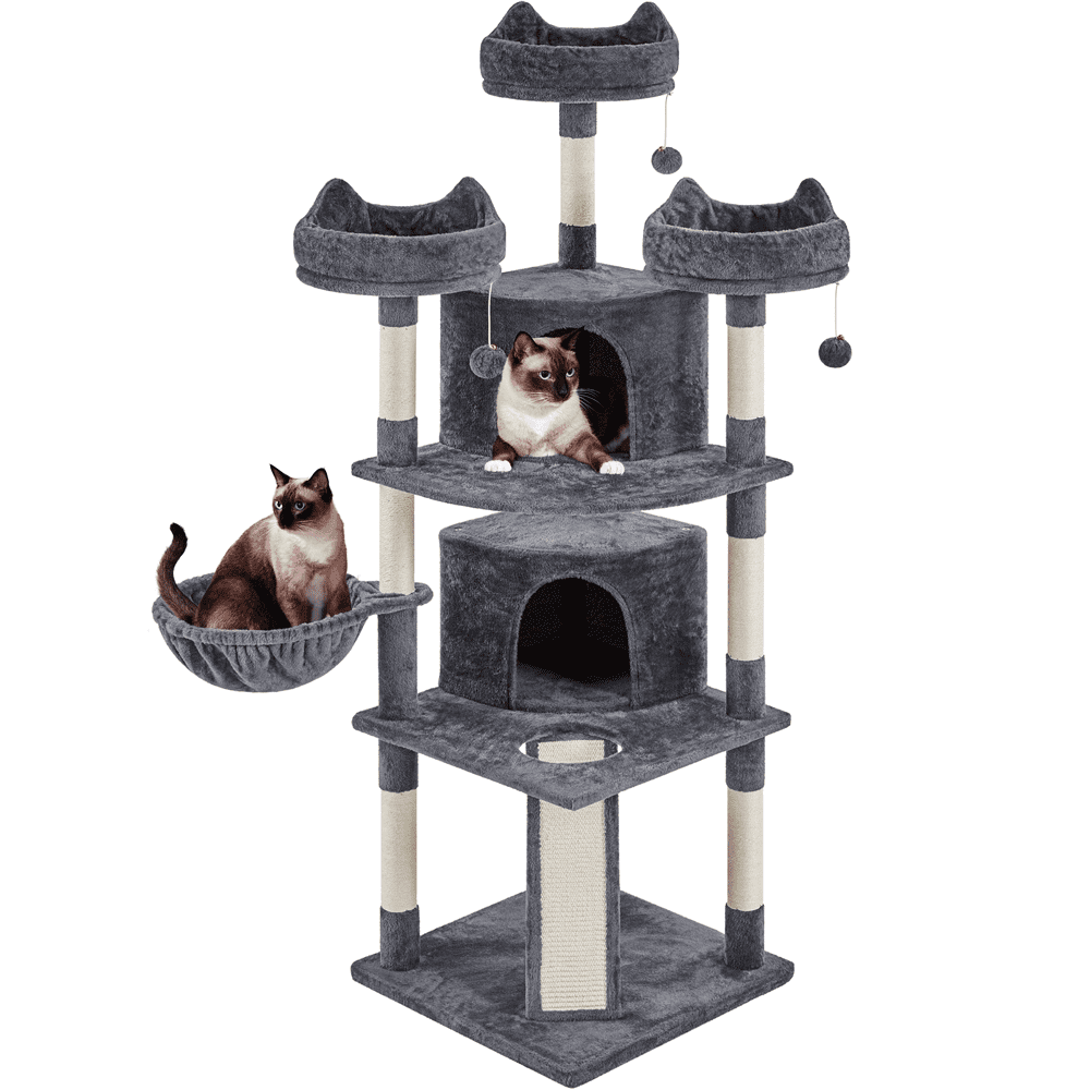 Renwick 69in Large Cat Tree Tower with Condos & Scratching Board, Dark Gray