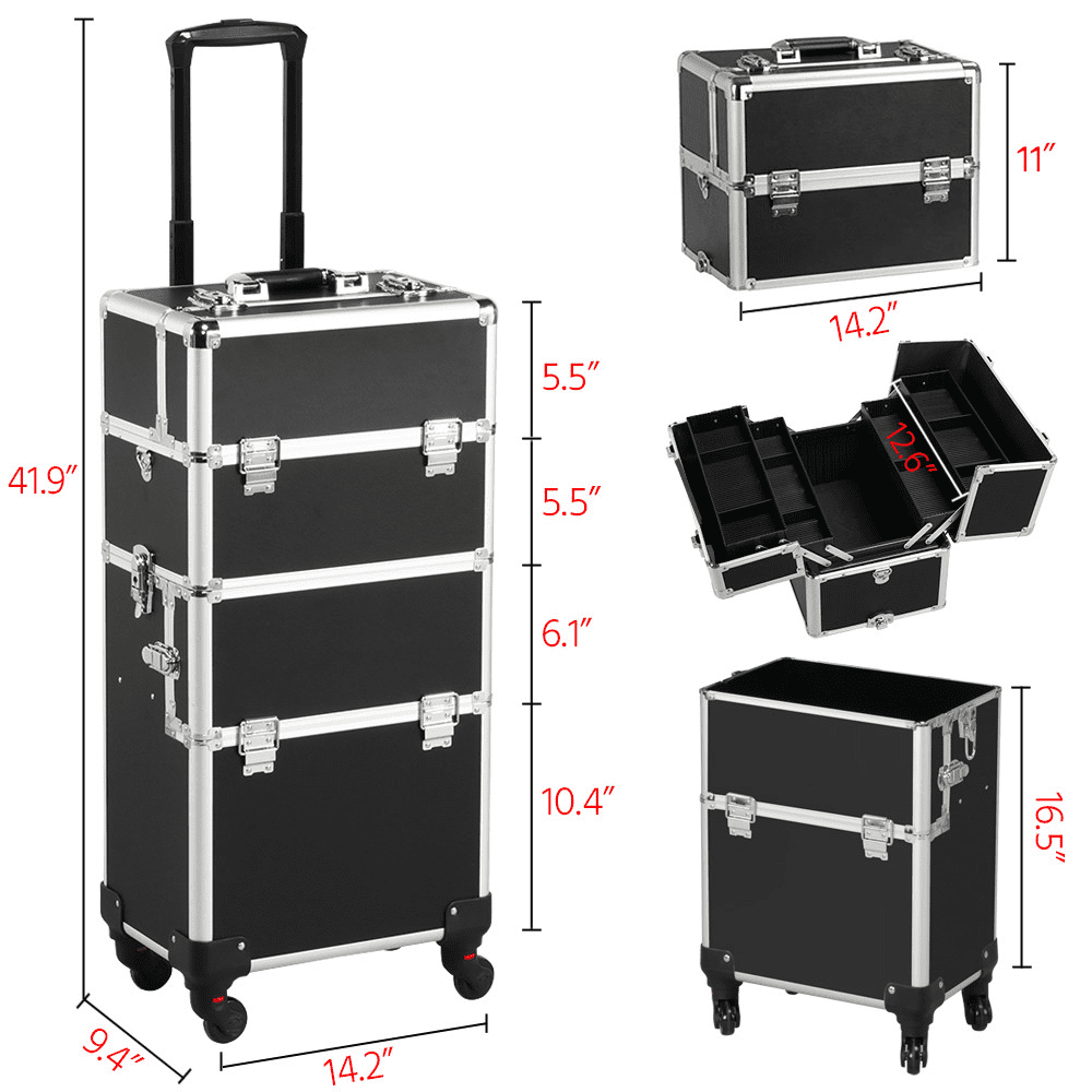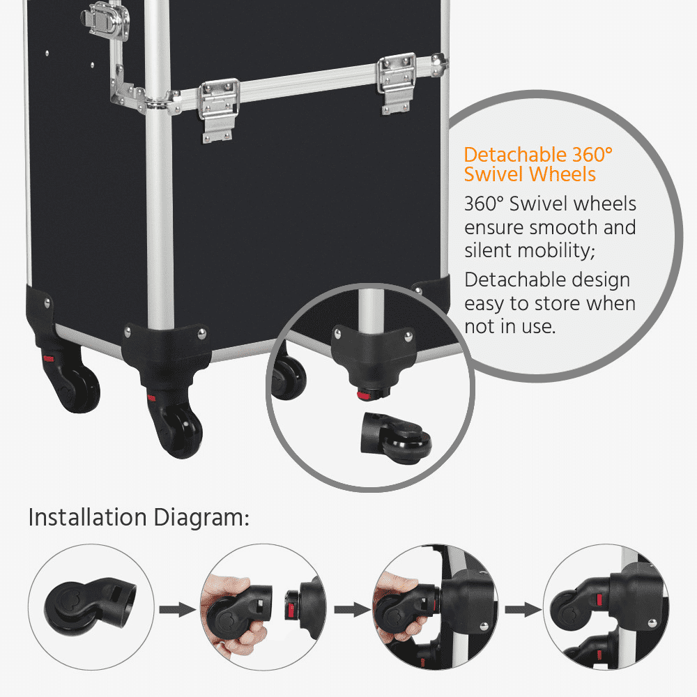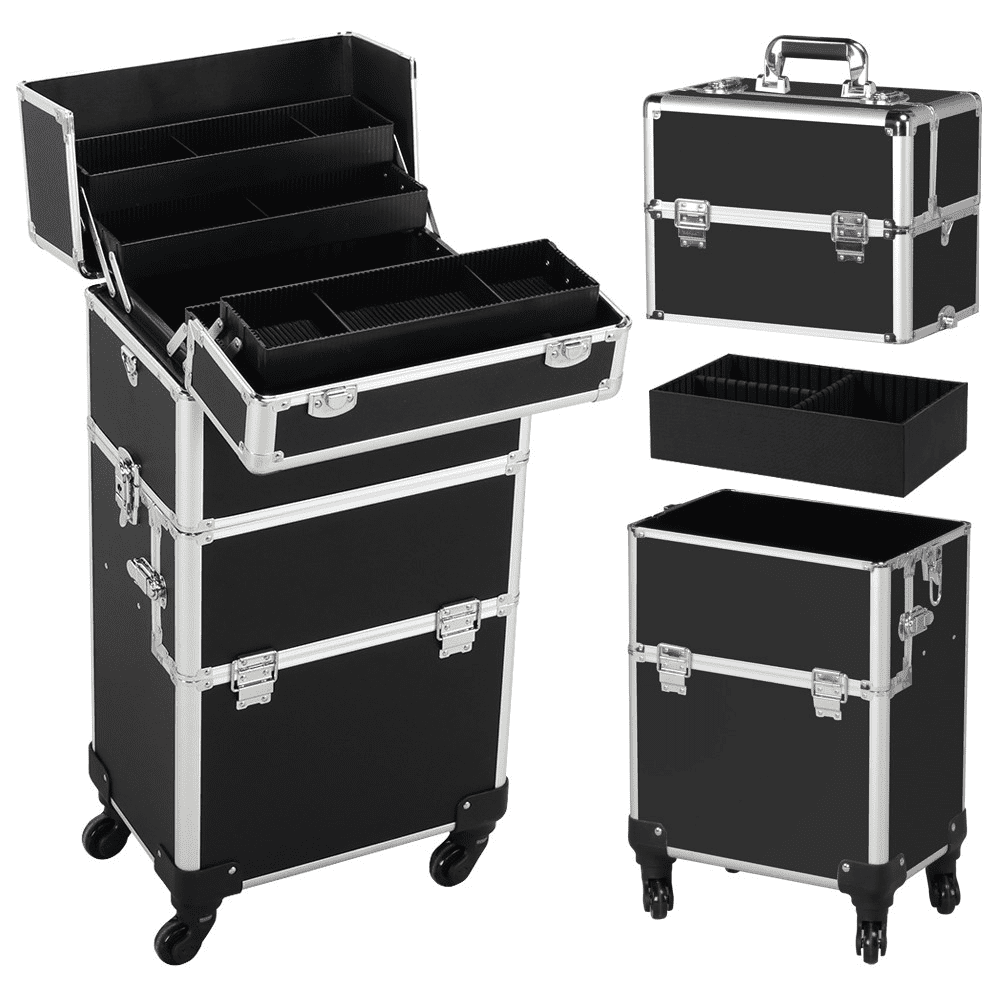 Renwick Rolling Aluminum 3 in 1 Makeup Case Trolley Cosmetic Beauty Box Case, Black
