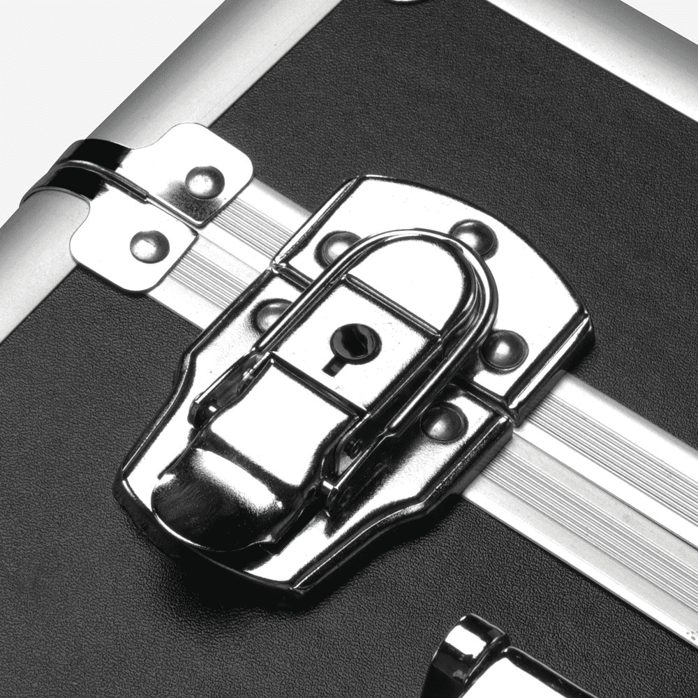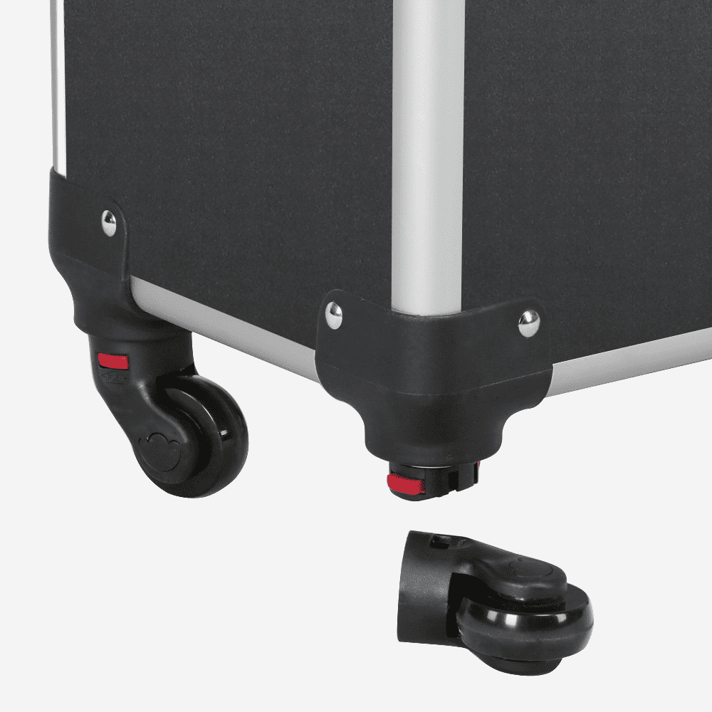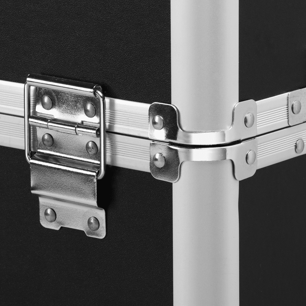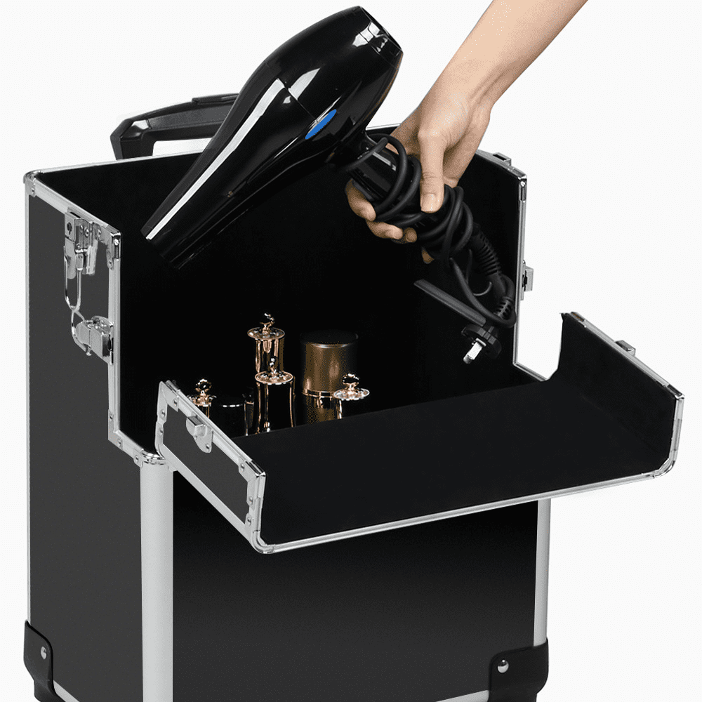This heavy-duty 3-in-1 cosmetic case trolley is constructed of premium aluminum in a solid structure with a max load capacity of up to 30 kg / 66 lb. It contains 2 compartments and 1 middle tray for organizing different sizes and shapes of toiletry and accessories neat and in order. The detachable design allows its upper case to be used separately to meet your needs. This rolling lockable makeup case trolley features 4 casters for smooth, quiet, and Omnidirectional mobility and sturdy lockable latches for added insurance.
