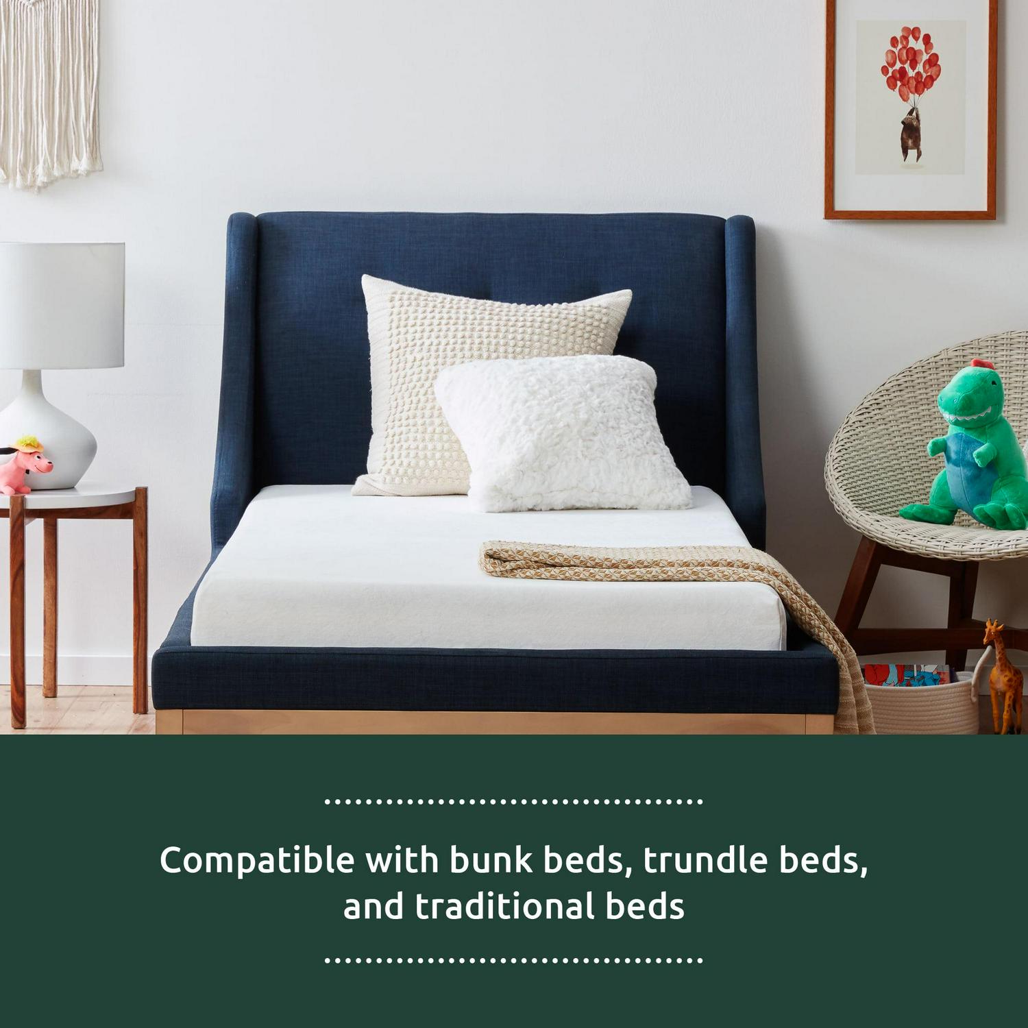 Outfit your kid’s room with this 6 inch Gel Memory Foam mattress by Rest Haven. Place this low profile mattress on a platform bunk, slat-style bed, or box spring for versatile use, and rely on the waterproof cover for protection in case your little one spills drinks or food while snacking in bed. This six inch mattress is also perfect for trundle beds or even your RV or camper bed. The rubberized nonslip backing ensures this mattress stays in place even if your child tosses and turns during the night. And you can rest easy knowing this memory foam mattress is made from cerfitied safe CertiPUR-US memory foam. This mattress ships compressed and rolled for convenience and will fully expand to 6 inches in 48 hours. Create a premium place of comfort for your child with the Rest Haven 6 inch Gel Memory Foam Mattress.