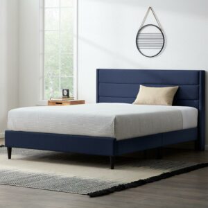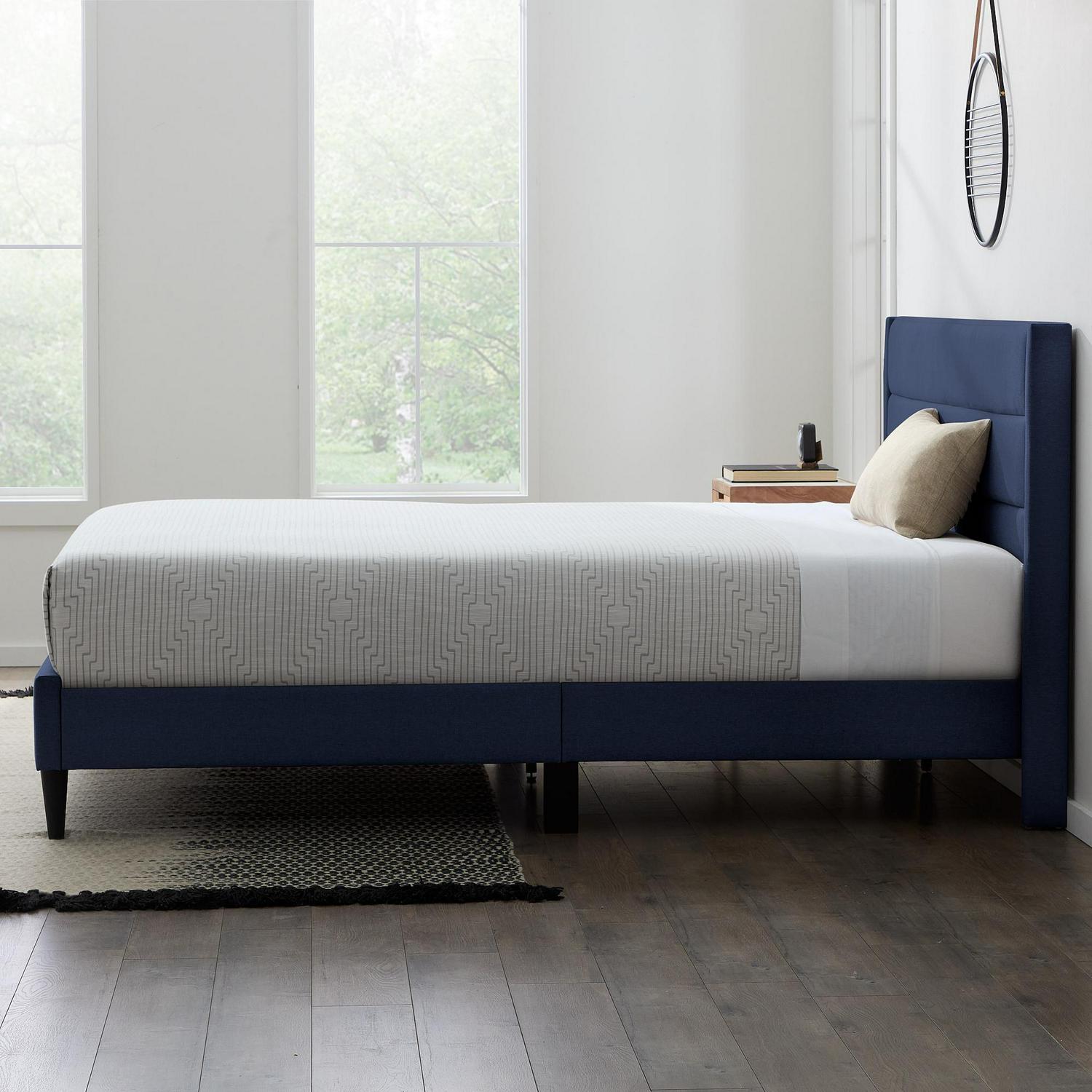 Rest Haven Renton Upholstered Channeled Platform Bed, Queen, Blue