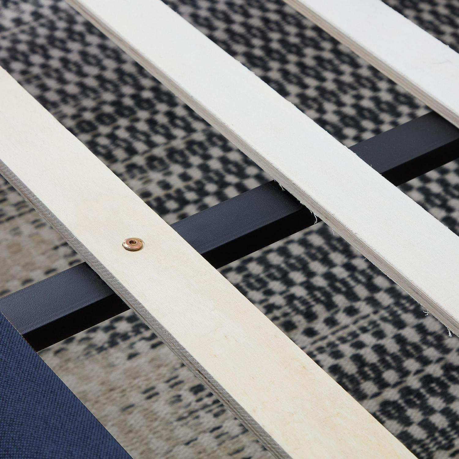 The Rest Haven Renton upholstered bed brings style and structure to your bedroom. Choose from four neutral color options to match your home s look and feel. The Renton makes a visual impact in any bedroom whether you love a modern or traditional décor style. This bed includes a comfortable padded headboard, side and foot rails, and sturdy legs. You’ll also find a supportive slat roll, metal center support bar, and hardware included. The headboard frame and side and foot rails are all built with solid Mango wood for durability. And with the convenient 14-piece slat roll, you no longer need a box spring for support.