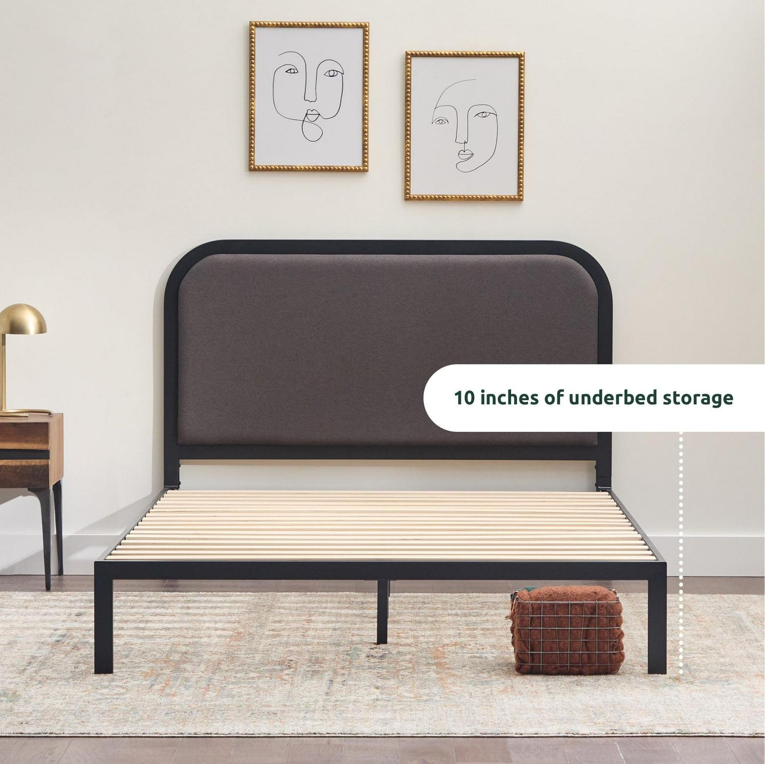 - UNDERBED STORAGE: The platform bed frame has 10 inches of storage space