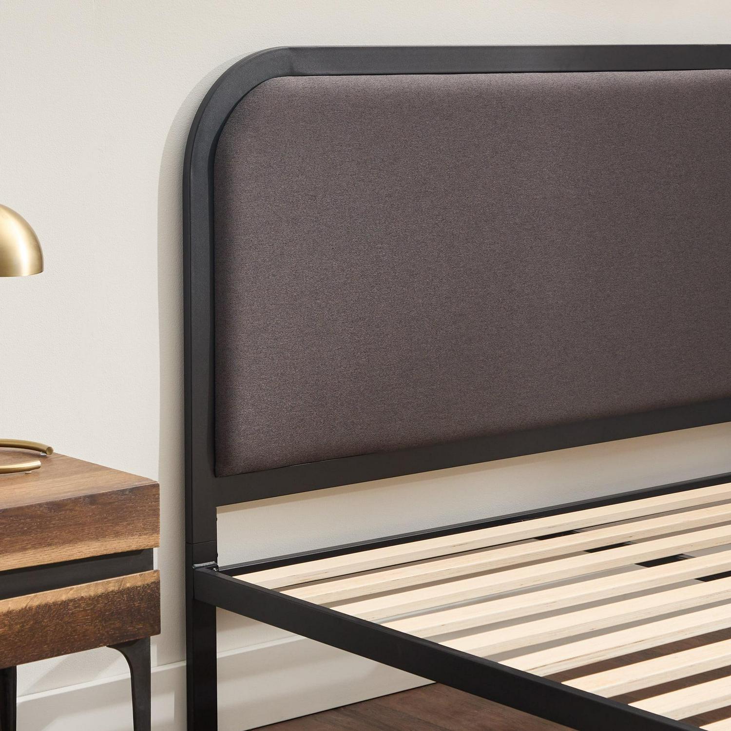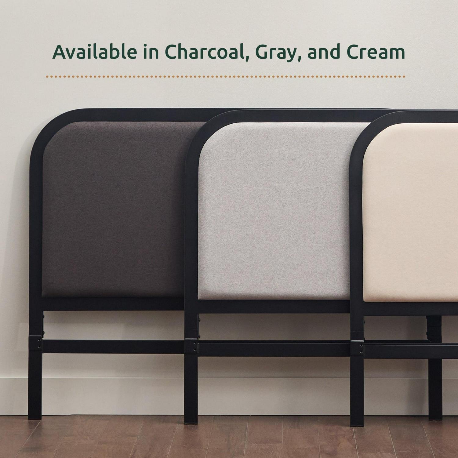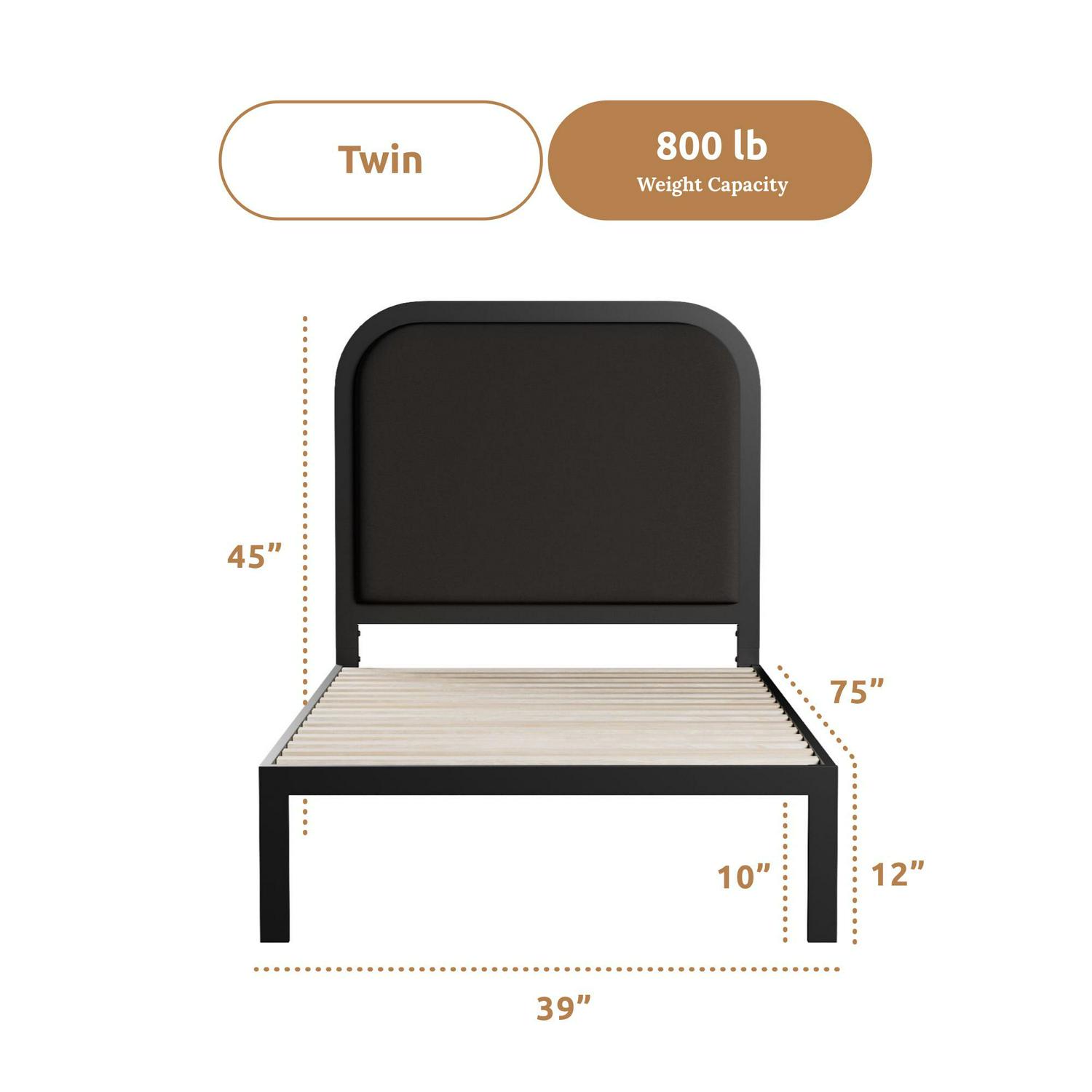 Rest Haven Salem Metal Platform Bed with Rounded Upholstered Headboard, Twin, Charcoal: