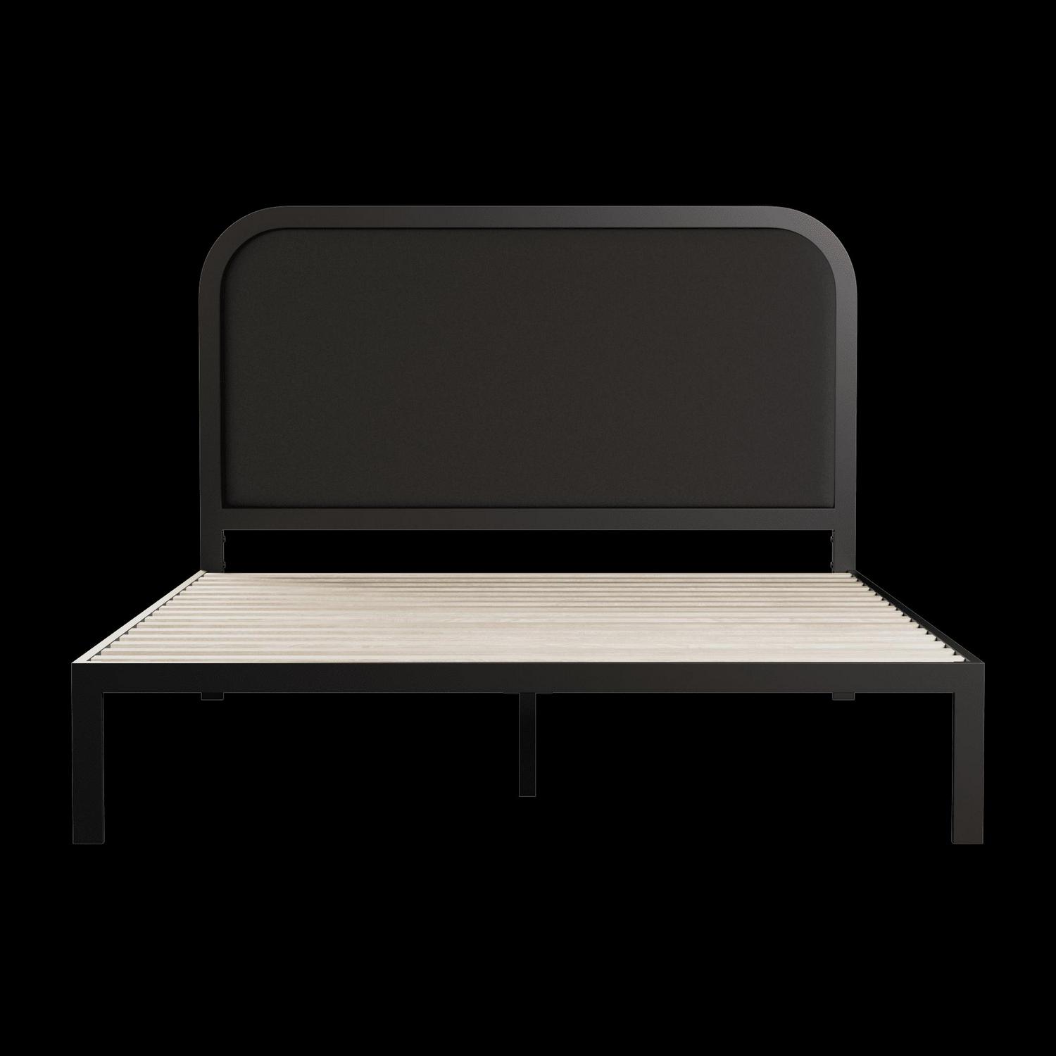 - CURVED DESIGN: The metal bed frame has a gentle curve across the top of the headboard