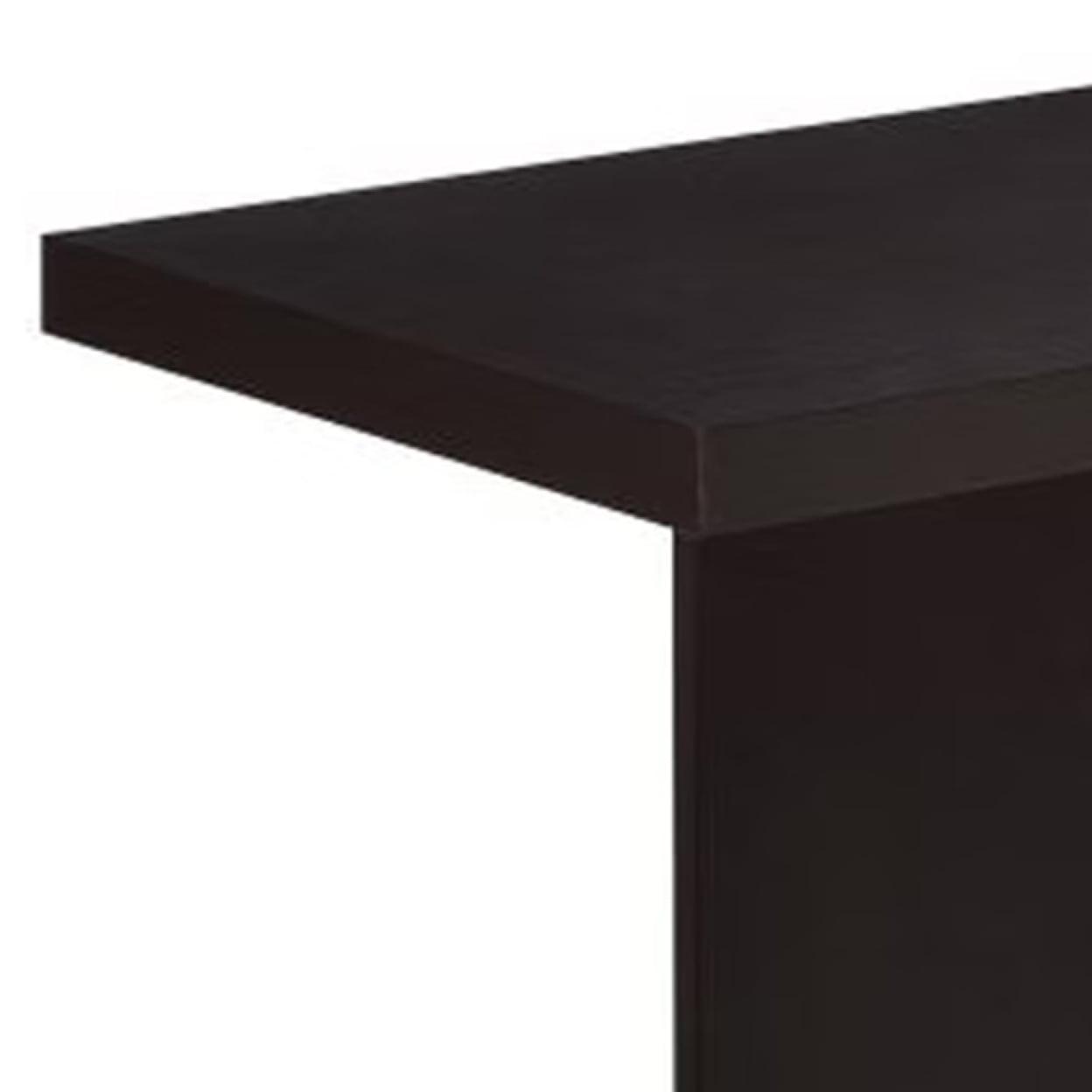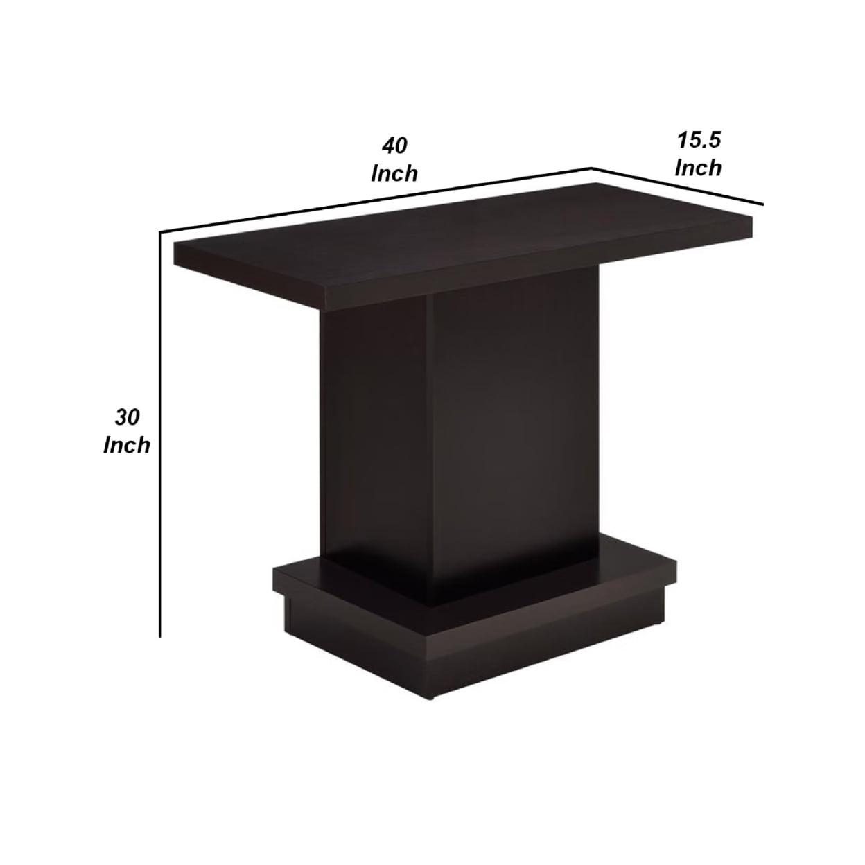 Contemporary Sofa Table With Pedestal Base, Cappuccino Brown- Saltoro Sherpi Bold, smart and handsome, this elegant pedestal style sofa table in solid wooden structure seems noteworthy due to its unique design. Now you can create a focal point in your living room with this stylish table adorning your corners, halls or dull areas in an enchanting way. It carries a lovely Cappuccino Brown finish to go with all decor styles. Indeed it will upscale your style statement taking it to the next level up!