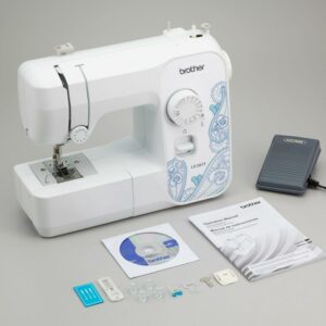 The Brother RLX3817 17-Stitch Full-Size Aqua Sewing Machine is a welcome addition for your sewing studio or crafting room. It’s straightforward to use and suitable for everyday tasks. This Brother full-size sewing machine’s versatile features include a blind hem stitch, four-step auto-size buttonhole, zigzag, and couching options. Selecting a mode is as easy as turning the dial, and the included instructional CD takes you through how to set up and use your unit. The RLX3817 has four quick-change sewing feet; a zigzag foot, a zipper foot, a buttonhole foot, and a button foot, so creating one-of-a-kind outfits or home décor pieces just got more creative. The upper thread tension control knob helps you adjust the thread tension to suit your fabric and project, so you avoid too loose or too tight, or puckered results. Lightweight, portable, and compact; this Brother full-size sewing machine is excellent for taking classes and is easy to store at home. It makes a thoughtful gift idea for a birthday, holiday, or any other occasion, RLX3817.