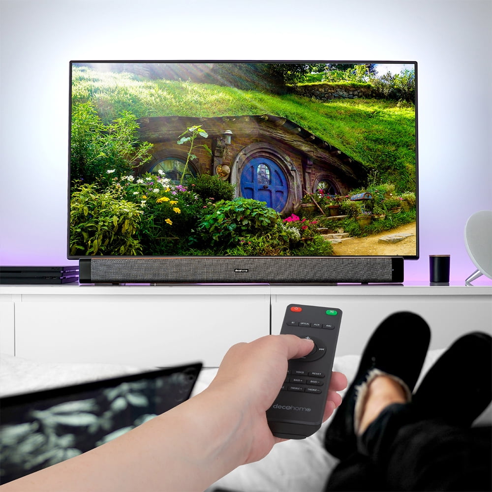 .CRTDGSB200WOD Enjoy a high-fidelity sound experience that takes any television to the next level! The Deco Home 60W Multi-Input Soundbar with Built-in Dual Subwoofers and Four 2.5 Drivers is a premium device to pair with your television. Use a number of methods to connect to your TV or str This product may not have been manufacturer certified but has been professionally inspected, tested and cleaned by Restored Program Sellers and Suppliers Fully functional product in Like New Condition. Item may have very light micro-scratches, invisible at a distance of 8-12 inches (arm’s length). This product may include accessories which might not be original but will be compatible and fully functional. This product may be returned within 90 days for free return or replacement if you are not satisfied. Battery capacity exceeds 80% capacity relative to its new equivalent