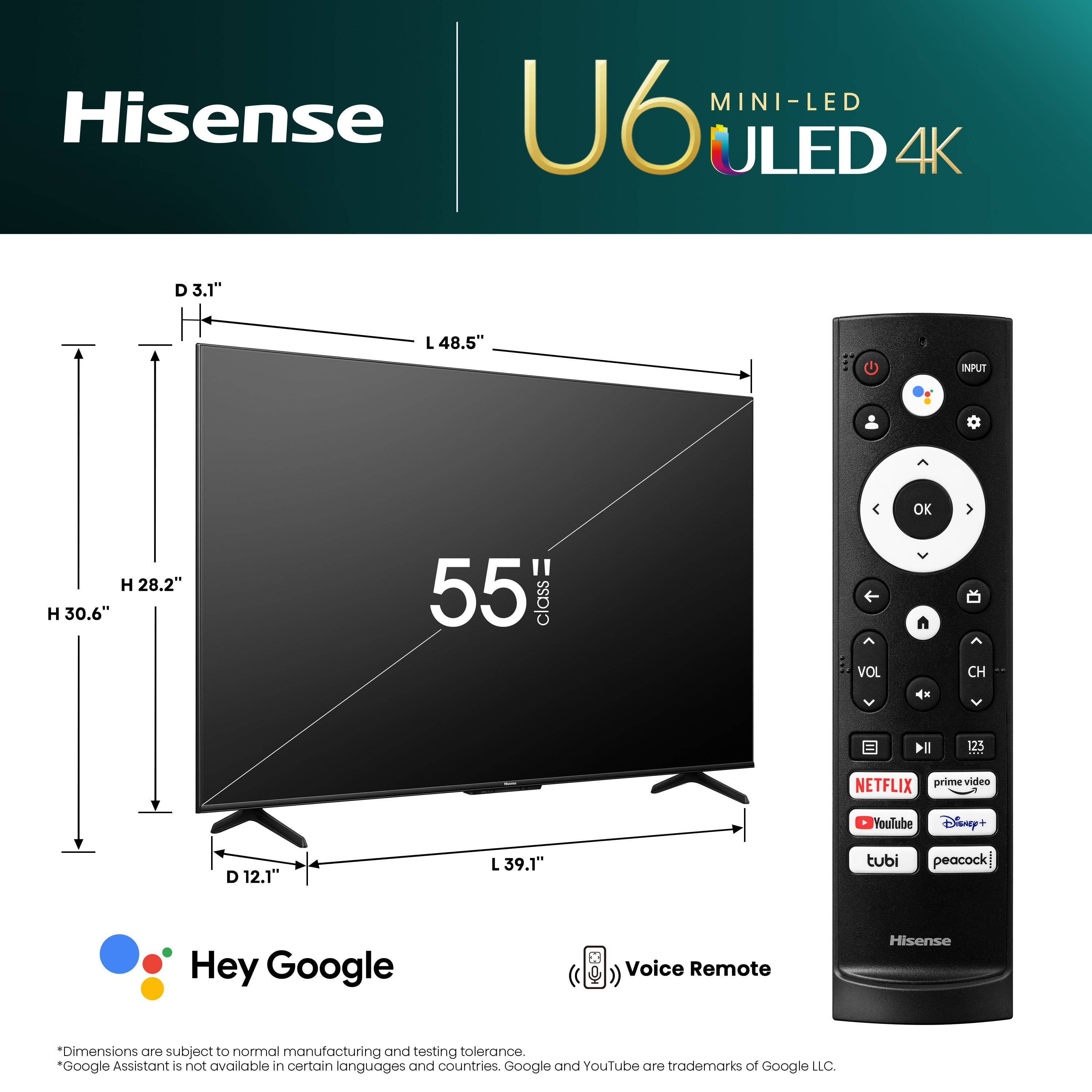Restored Hisense 55-Inch Class U6 Series Mini-LED QLED Google Smart TV (55U6K) – QLED, 600-Nit, Dolby Vision IQ & Dolby Atmos, Full Array Local Dimming (Refurbished)