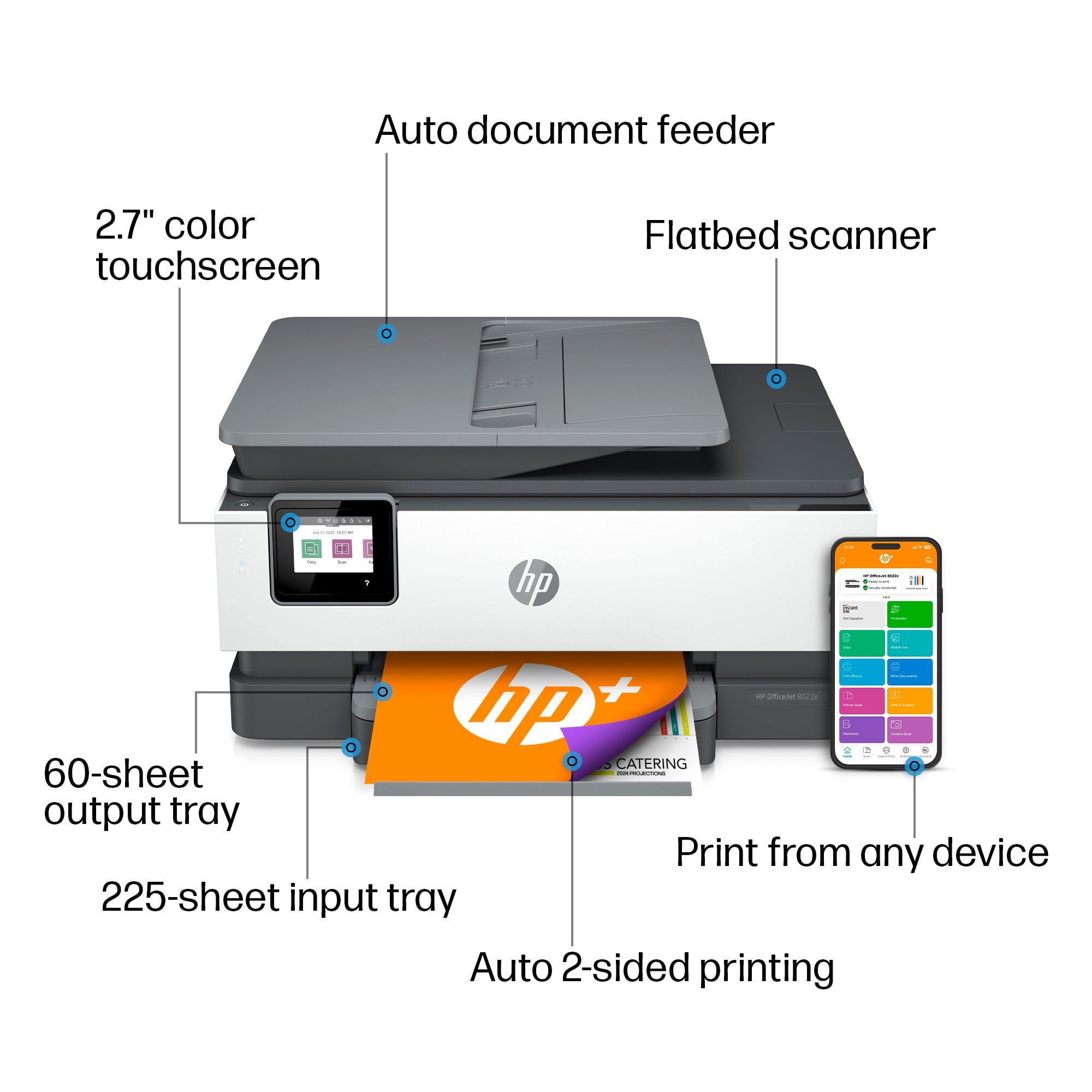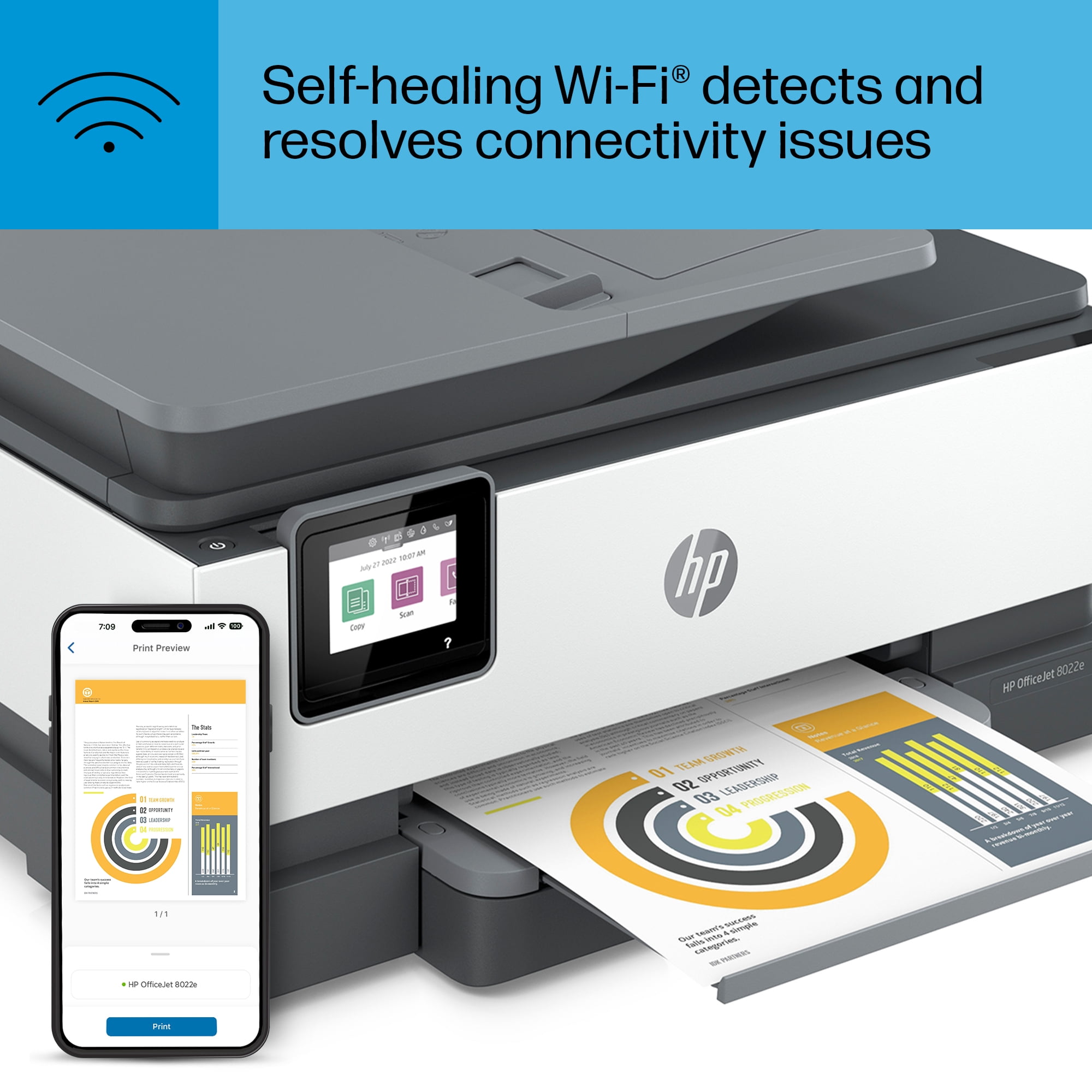 Restored HP OfficeJet 8022e All-in-One Wireless Color Inkjet Printer – 6 Months Free Instant Ink with HP+ (Refurbished)