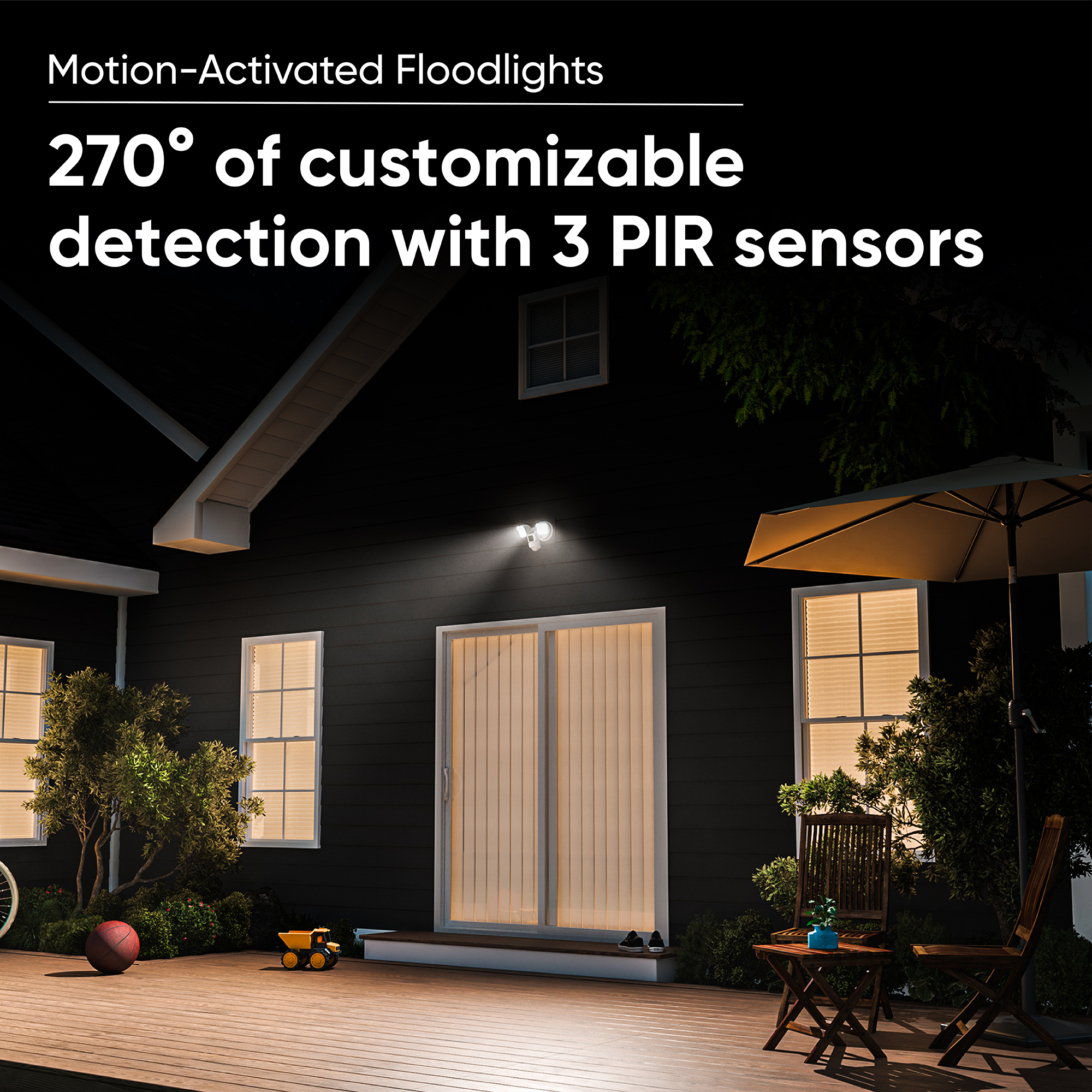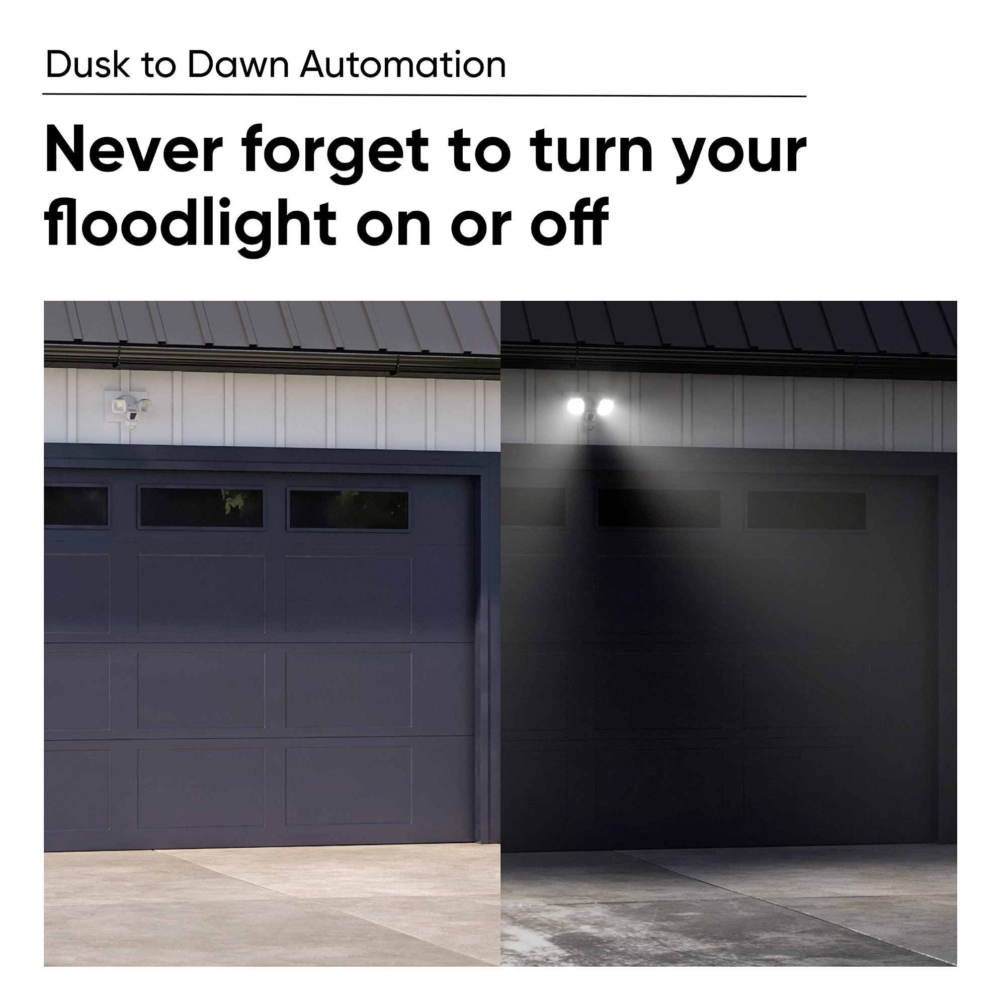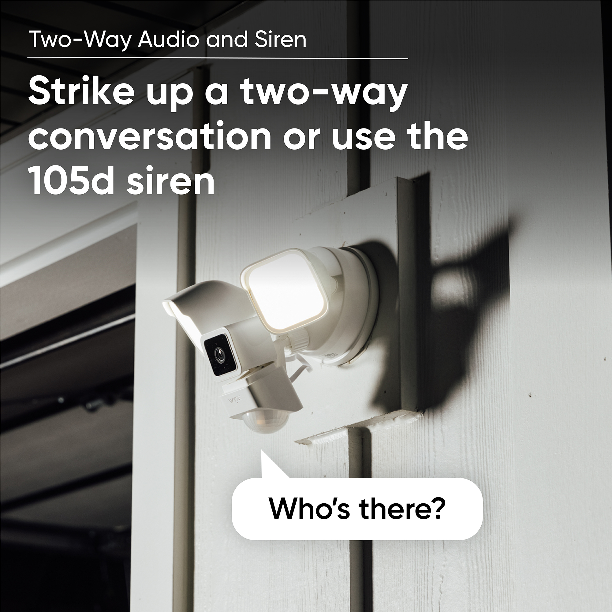 Two super bright, adjustable LEDs for a combined 2600 lumens of light, and a handy dimming option where less brightness is desired. Three individually controlled PIR sensors provide for 270 degrees of customizable motion detection. Range and sensitivity are adjustable up to 30 feet. Built in Wyze Cam v3 provides sound detection, as well as artificial intelligence and the ability to identify and record motion, with or without the floodlight, in 1080p Full HD with Starlight Sensor color night vision. Dusk to Dawn automation. Wyze Cam Floodlight knows when the sun is down and when it’s up. No need to turn the floodlight on or off once it’s connected. 90dB Siren for increased deterrence and a speaker with two-way audio to communicate with anyone outside through the Wyze app. Extra USB port for twice the coverage. Wyze Cam Floodlight provides an additional port for an extra Wyze Cam v3, and the ability to watch in multiple directions. Rules and Automations: All the usual smart settings from vacation mode to event triggering and the ability to sync with other Wyze devices. IP65 Weather Resistance: Built to last, from dust clouds to rain clouds and from heavy wind to heavy snow.
