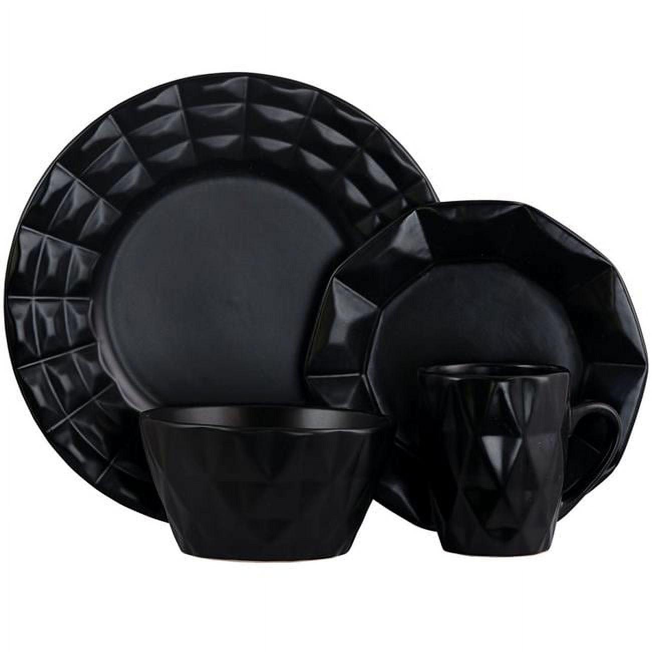 Retro Chic 16-Piece Glazed Dinnerware Set in Black
