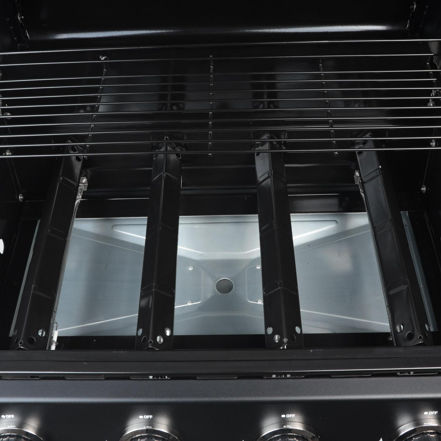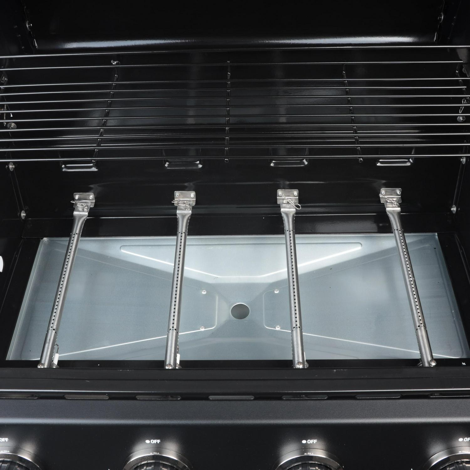- 4 stainless steel burners providing a total of 48,000 BTU
