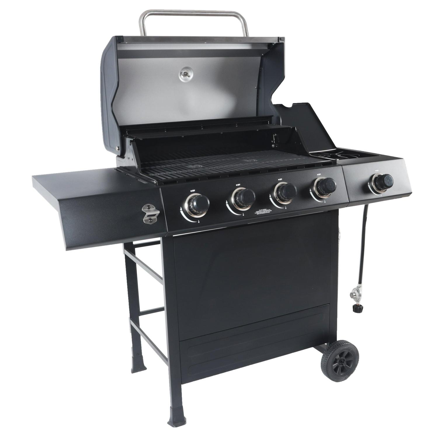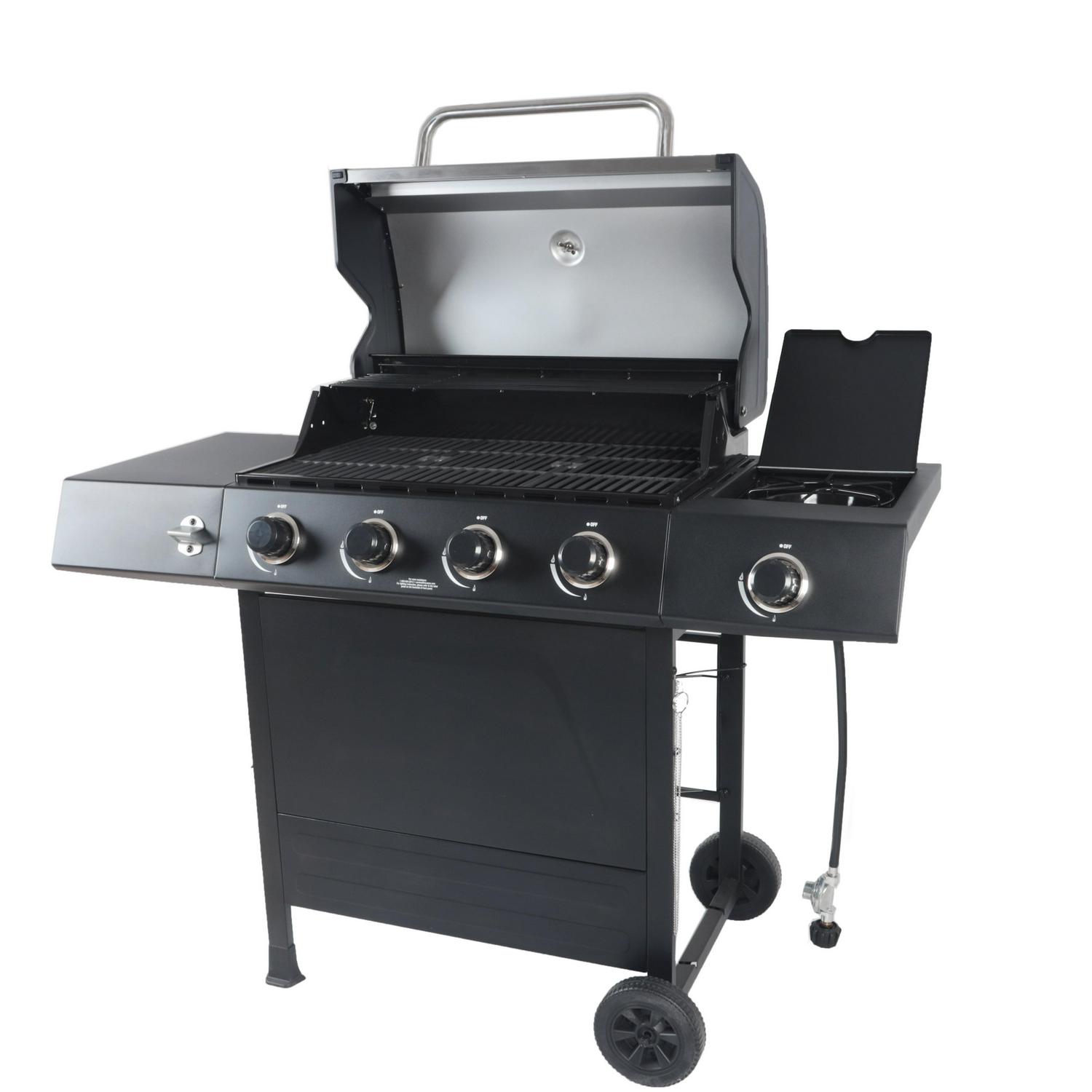 RevoAce 4-Burner Propane Gas Grill with Side Burner, Stainless Steel and Black