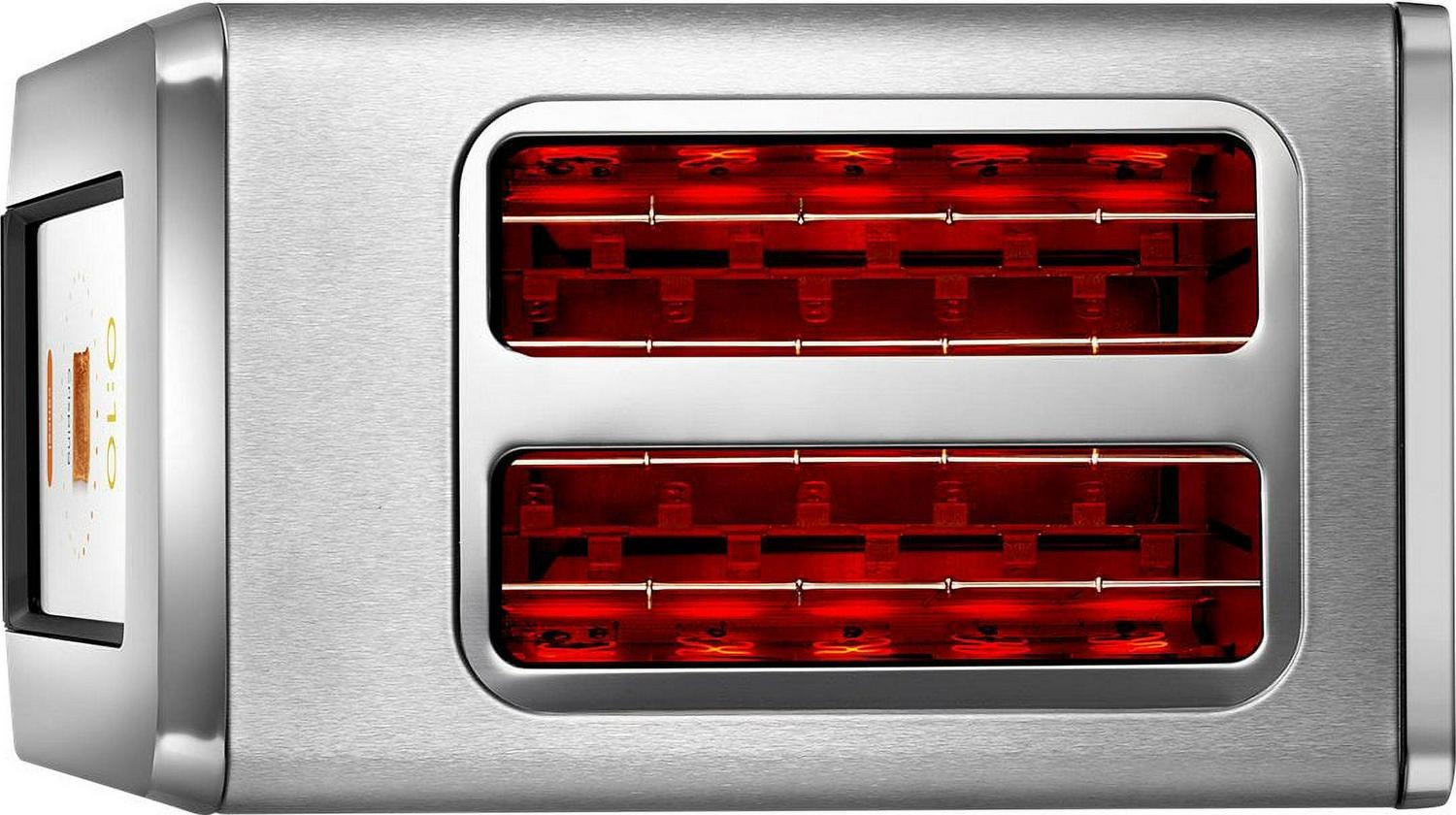 Meet the world s only high-speed smart toaster. Say goodbye to slow toast, burnt toast, dry toast, uneven toast, toast that gets stuck and toast you have to toast again. The Revolutionary InstaGLO heating system reaches full glow in two seconds, with no preheating. Faster toasting delivers tastier results crunchy outside, flavorful and moist inside. The smart touchscreen gives you control over your perfect toastyness level so your bread, bagel, English muffin, frozen waffle or toaster pastry comes out just the way you want it. Includes new mode for our Panini Press accessory. Make melty sandwiches and quesadillas faster and easier than ever before. (Panini Press accessory sold separately). Let s toast!