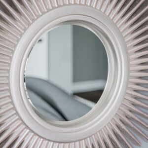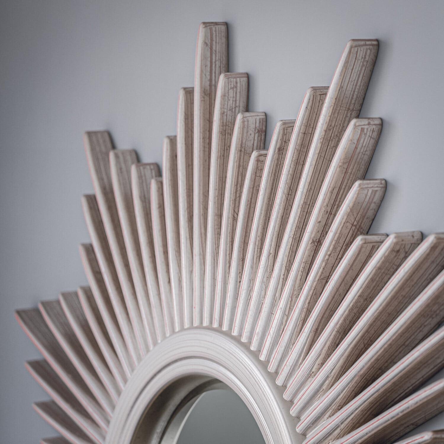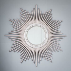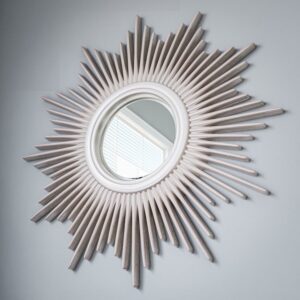– Mid-century modern design: staggered sun rays and glamourous warm silver make this art-deco inspired mirror shimmer and shine. perfect for your retro mid-century modern décor with its glam metallic look, this sunburst-shaped wall mirror will help amplify natural lighting in your eclectic entryway, throwback vintage living room, and trendy posh dining room with style.