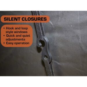 The Rhino-200 is perfect for any hunter using any weapon of his or her choice. With a silent, zipper-less door and window system, you can climb in, adjust, and climb out of this blind without making a sound. Standing at 66 inches tall and 75 inches wide, you can easily fit 3 hunters comfortably in the R200. The Rhino 200 features a 180 degree window system that makes seeing deer or any other game a breeze. Realtree Edge camo allows this blind to blend in perfectly with almost any environment, and the included brush loops make it possible to add extra natural habitat to the blind if need be. Each blind comes with a backpack style carry bag that allows the hunter to easily carry the blind to their desired location. The included tie down ropes and stakes and the durable 5-hub construction make setting this blind up and taking it down a breeze. Rhino Blinds, the toughest ground blind known to man!