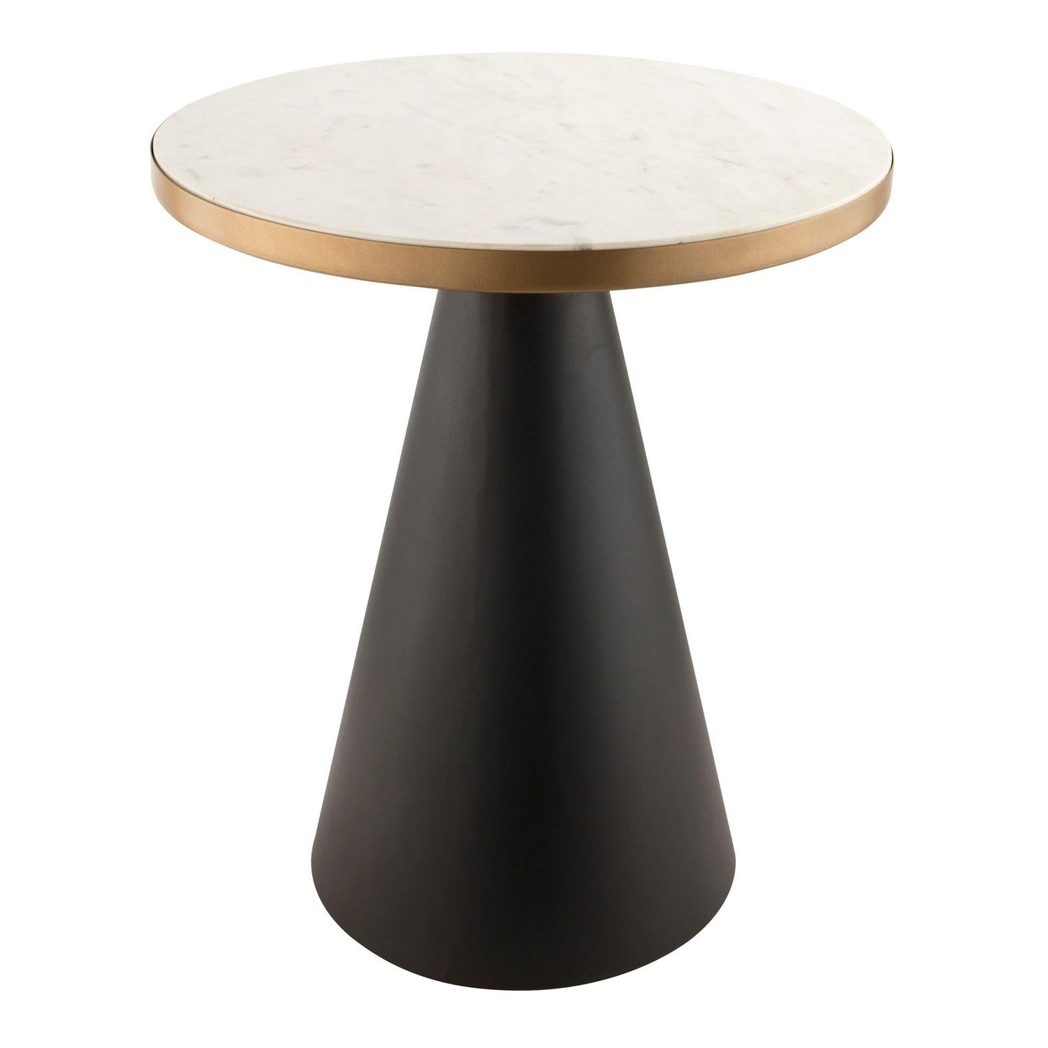 Brimming with refinement, this eye-catching design shows off an elevated white marble top elegantly bordered in gold and anchored to a black conical base. Available in two sizes, the Richard collection is sure to enhance any space its placed. As this is a handmade product, slight variations are to be expected and may result in small gaps between the marble and frame.