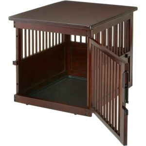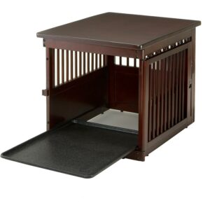 This richell wooden end table dog crate is a versatile item for pet owners. It saves space by serving as a stylish end table, as well as a pet containment and leisure space. Multiple vents provide a 360-degree view and a well-ventilated environment for your pet. This wooden dog crate includes a removable sliding tray for easy cleaning. The stain-resistant finish helps this piece maintain its look over time.
