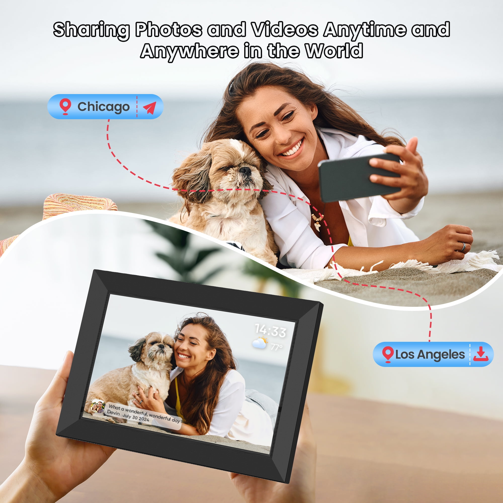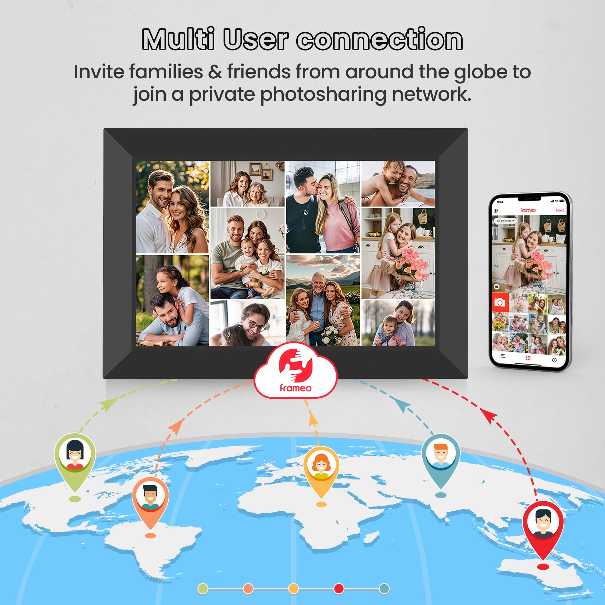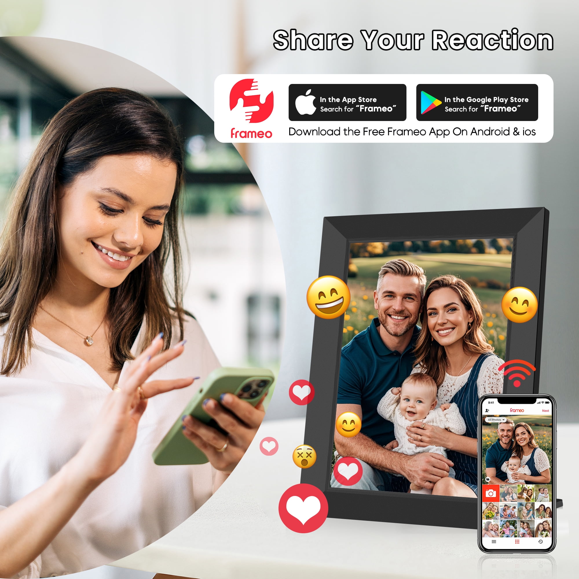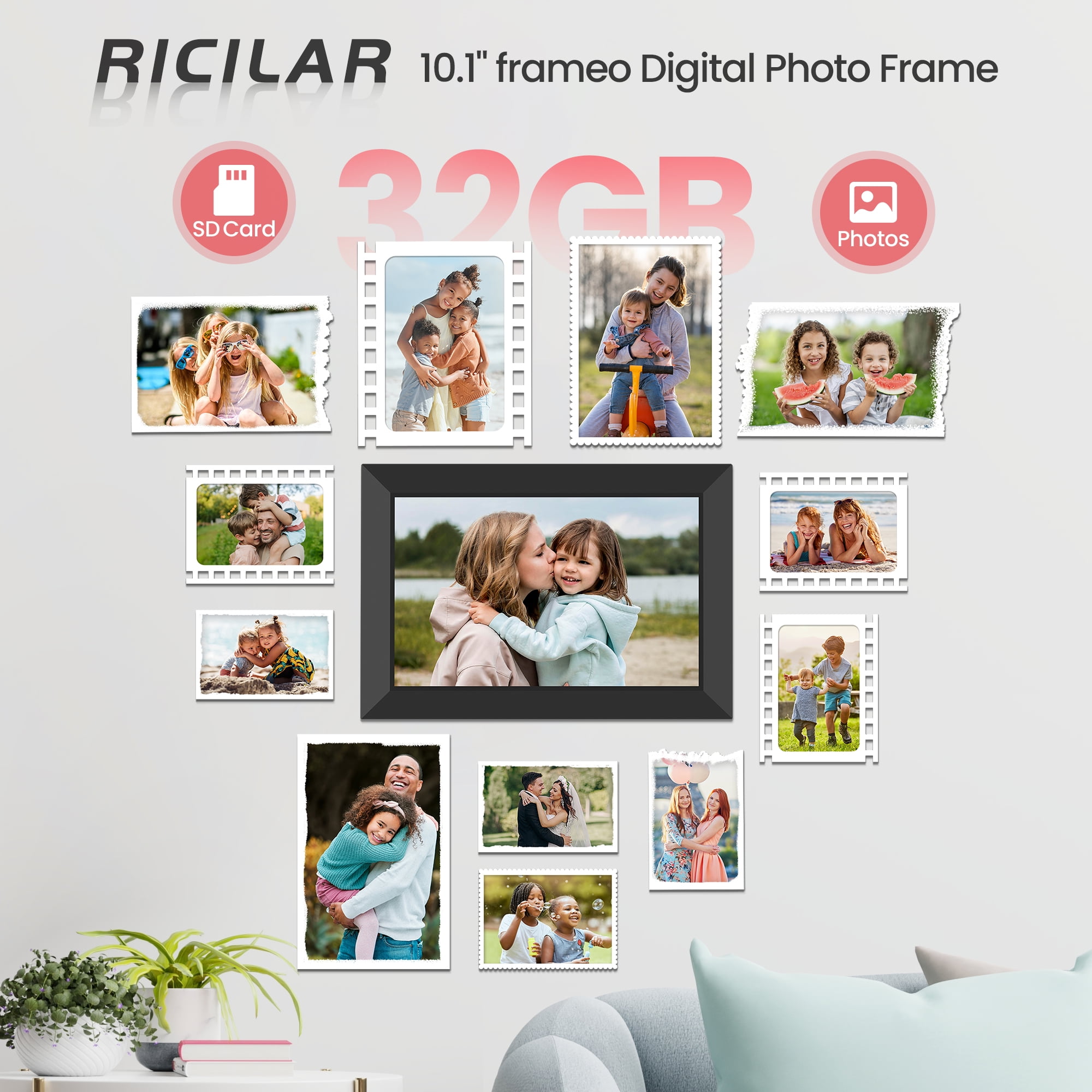 Share Moments Anytime, Anywhere Stay connected with loved ones using the free “frameo” app on your Ricilar frameo 10.1 inch smart wifi digital photo frames. Easily send photos or videos (up to 15 seconds) from anywhere, keeping everyone close despite the distance. Please note, frameo+ membership is not included with the frame. The free version allows you to connect unlimited frames, send photos and videos, and add captions. For additional features like sending up to 100 photos at once, longer videos, and cloud backup, a frameo+ membership can be purchased separately. Share Life’s Moments with Ease This user-friendly automatic picture frames makes sharing life’s special moments simple, even for those less familiar with smart devices. Download the app, invite friends and family, and start sharing with just a few taps on the touch screen. Customize your video picture frames with features like adjustable brightness, sleep mode, slideshow options, weather and funny interactive reaction to create a personalized viewing experience tailored to your preferences. 10.1-Inch HD IPS Touch Screen The electronic picture frames features a stunning 10.1-inch IPS full-view touch screen, delivering a captivating visual experience. With a high resolution of 1280*800, this frameo 32gb frame ensures sharp, vibrant images under any lighting condition, bringing your photos to life. It automatically rotates images horizontally or vertically based on the frame’s position and comes with a detachable stand for easy placement. The wifi picture frames support image formats like JPG, JPEG, BMP, PNG, and video format MP4 for versatile media display. 32GB Internal Memory with Multi-User Connectivity The RICILAR digital photo frames wifi features 32GB of built-in memory, storing over 80,000 high-resolution photos and short videos. Expand your storage easily with an SD card (up to 32GB), though the SD card is not included in the package. Using the “Frameo” app, you can link multiple frames and send photos or videos to different frameo digital frames. Additionally, you can invite others to join your frame, allowing family members to share their joyful moments directly with each other. Perfect Gift for Loved Ones
