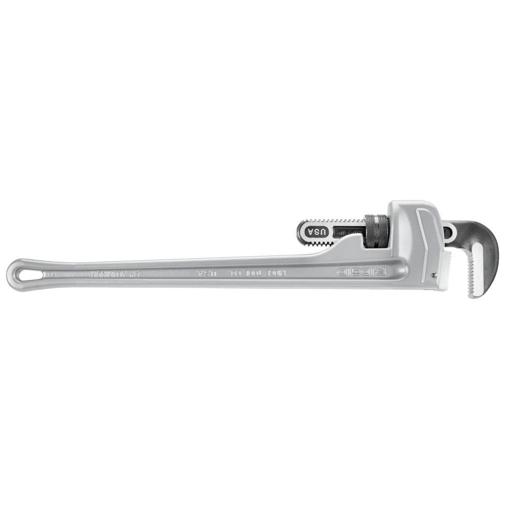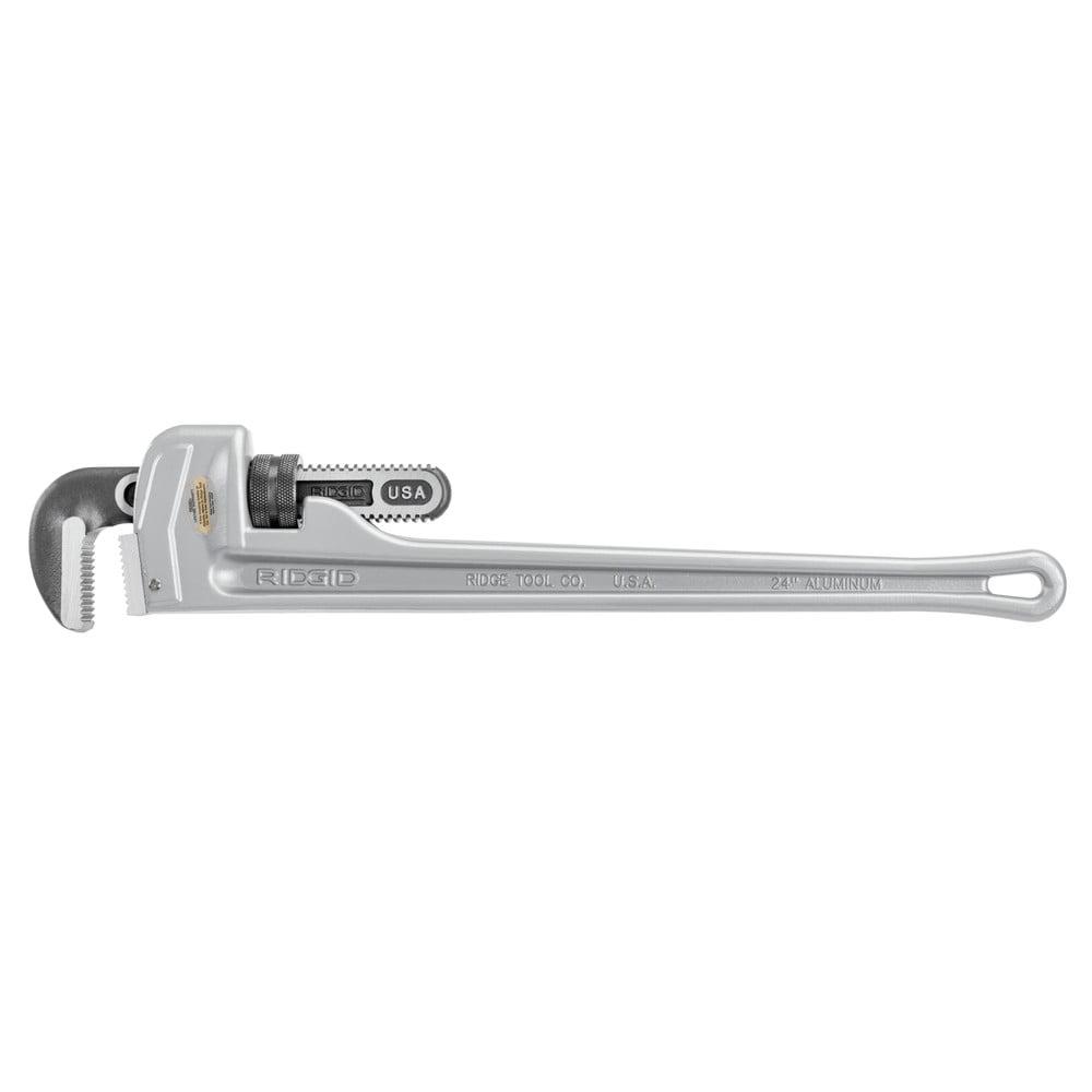This 24 in. aluminum pipe wrench provides professional strength in lightweight aluminum. It the same durability and ease-of-use found in all Ridgid heavy-duty wrenches. Built for tough jobs with a comfortable grip that resists slipping.