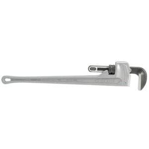 The RIDGID 836 36-inch Aluminum Straight Pipe Wrench delivers durable performance for professionals working in the toughest environments. With a floating hook jaw that extends to grip pipes up to 5 inches in diameter, this tool maximizes control over some of the largest pipes on the job. It utilizes large threads on the hook and heel to grip soft pipes. These teeth clean themselves, so you can use the Ridgid straight pipe wrench without stopping to clear away metal particles between uses. This tool uses the same assembly as other Ridgid wrenches, so you can swap out the hook jaw and heel jaw with other heavy-duty wrenches on the job. The aluminum pipe wrench weighs much less than the cast-iron models, at just 11 pounds it’s much more comfortable to transport with other tools, so you can take it anywhere you need to go.