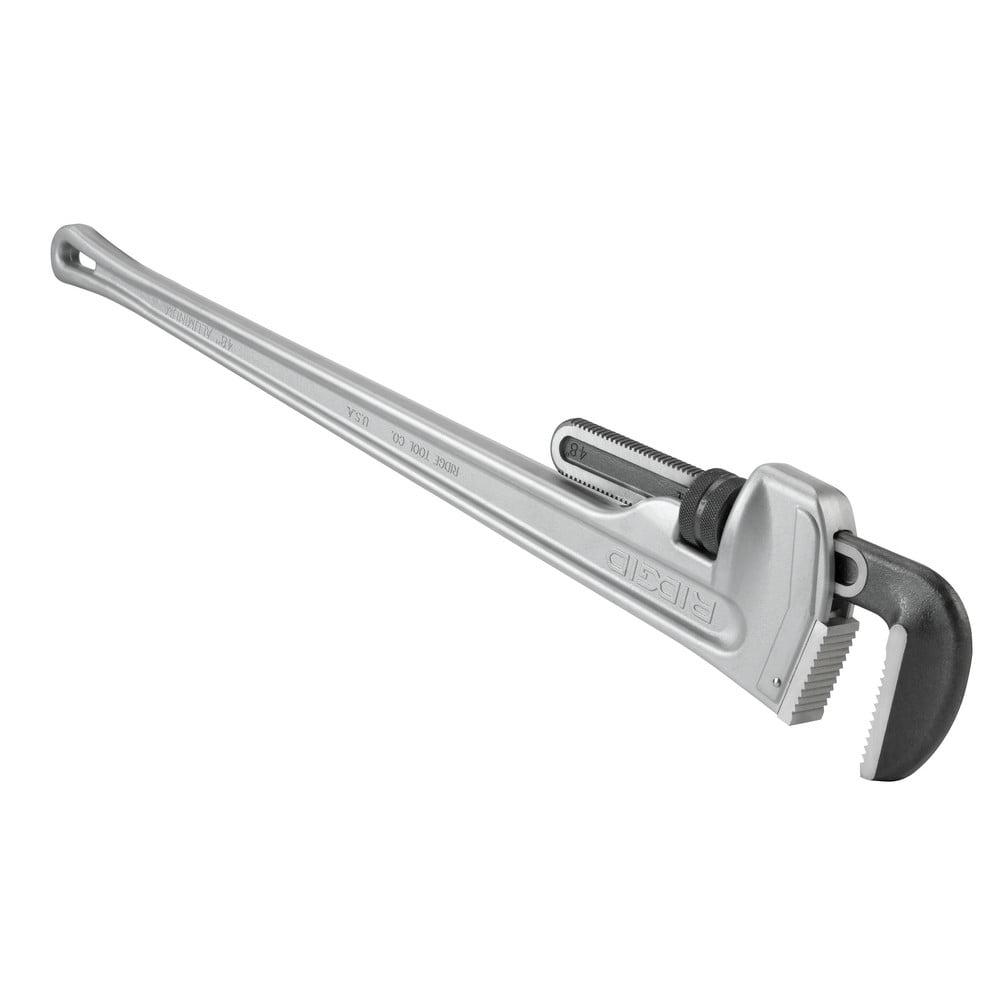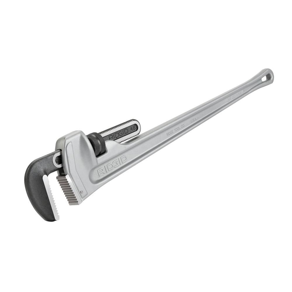 - Ridgid 848 48-inch aluminum straight pipe wrench weighs only 18.5 pounds
