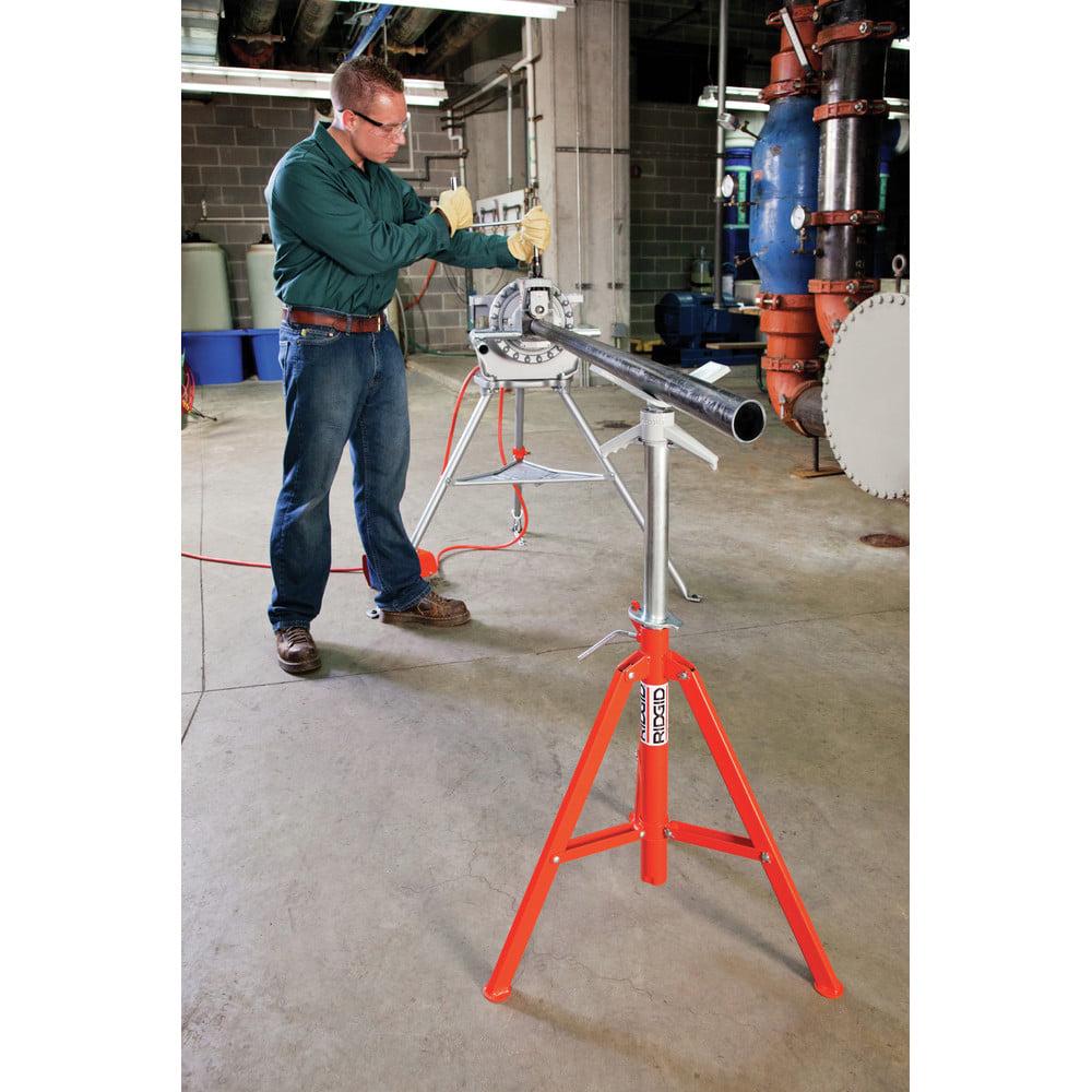 – The Ridgid pipe stand is strong enough to position piping for welding and fitting of up to 12 inches in diameter and a weight of 2,500 pounds