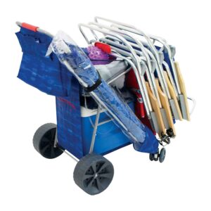– Holds up to 4 chairs and easily transports and stores your other beach gear