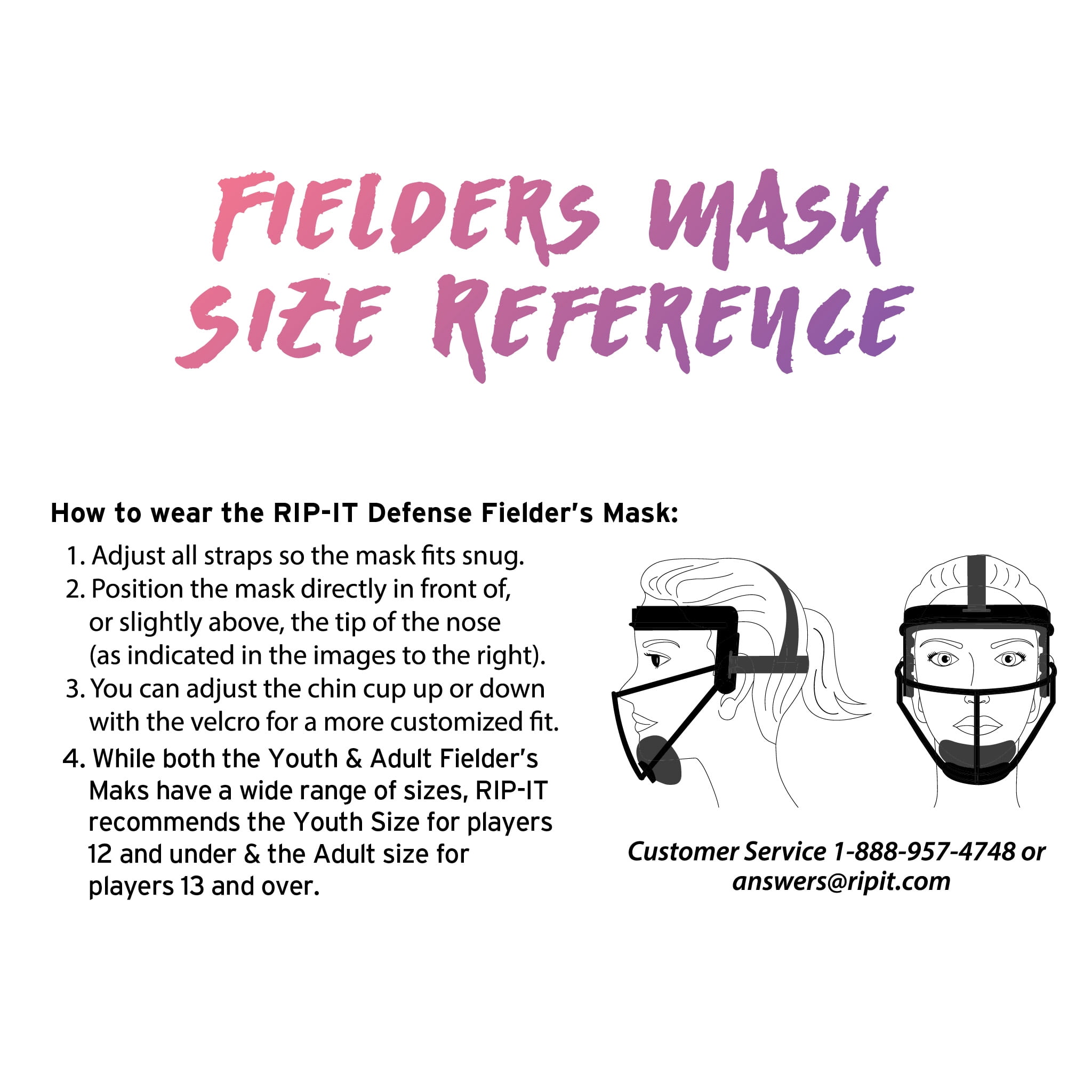 You play softball like a pro. So protect yourself like one. Meet the face mask by RIP-IT that’s built for the big leagues. And get ready to up your game. Product Benefits: Better visibility. Wider field of view and better peripheral vision than any other softball fielder’s mask. Comfortable fit. Padding and ponytail strap provide snug fit with superior adjustability. Moisture wicking. Washable, wrapped padding manages dampness and reduces irritation. Eliminates glare. Blackout Technology coating inside bars eliminates distracting glares. Lightweight design. Steel bars with a powder-coat finish create a lightweight, protective frame. Policy: Protected under Peace of Mind Policy. Register your product.
