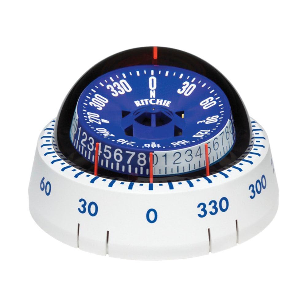 Navigate the waters using this Ritchie XP-98W X-Port Tactician Compass. With it, you can add safety, efficiency, and effectiveness to your travels. It has a 3″ comb dial with tactical quadrants that shows wind shifts and headers. A course under the movable bezel and heading indicator locks-in rhumb or lay lines. This Ritchie marine compass, white with blue dial has a forward lubber line to steer magnetic courses.