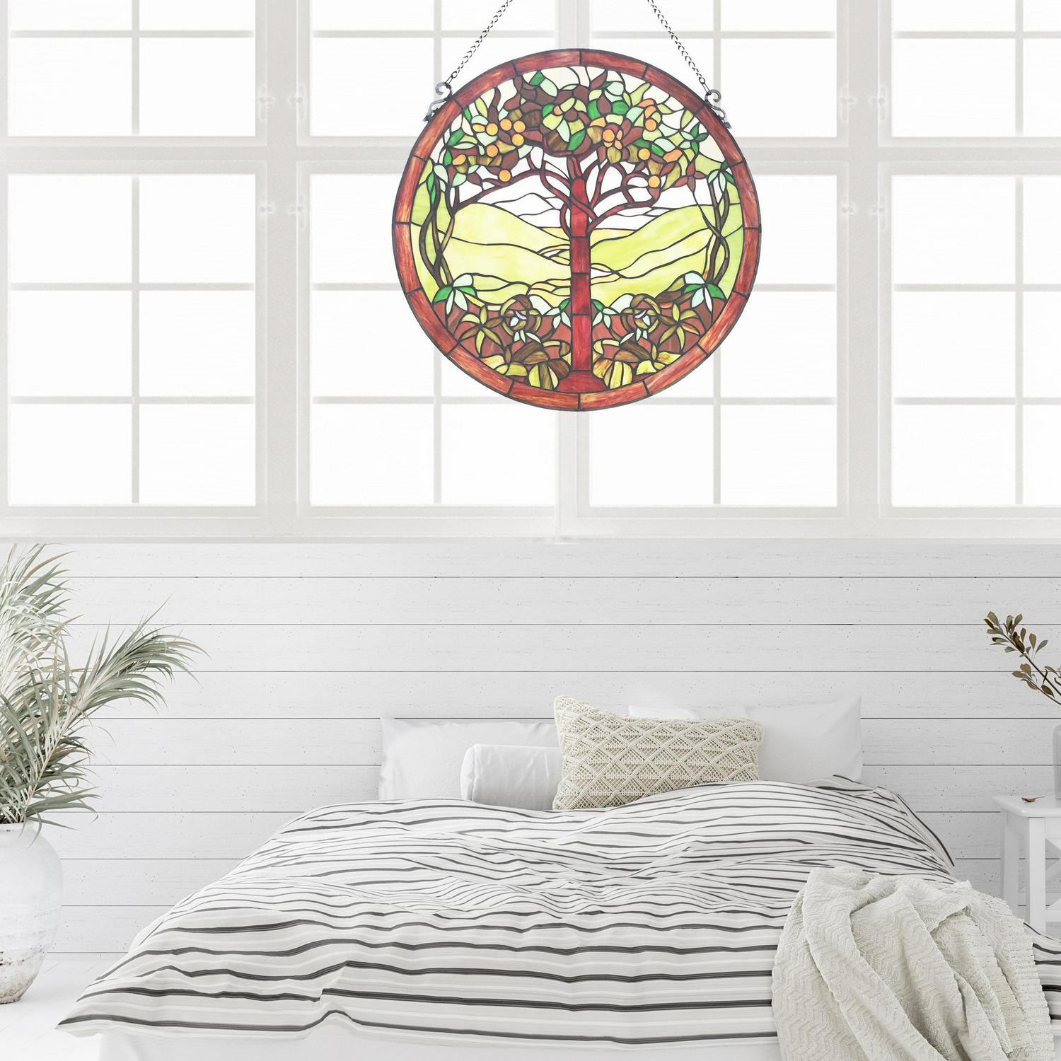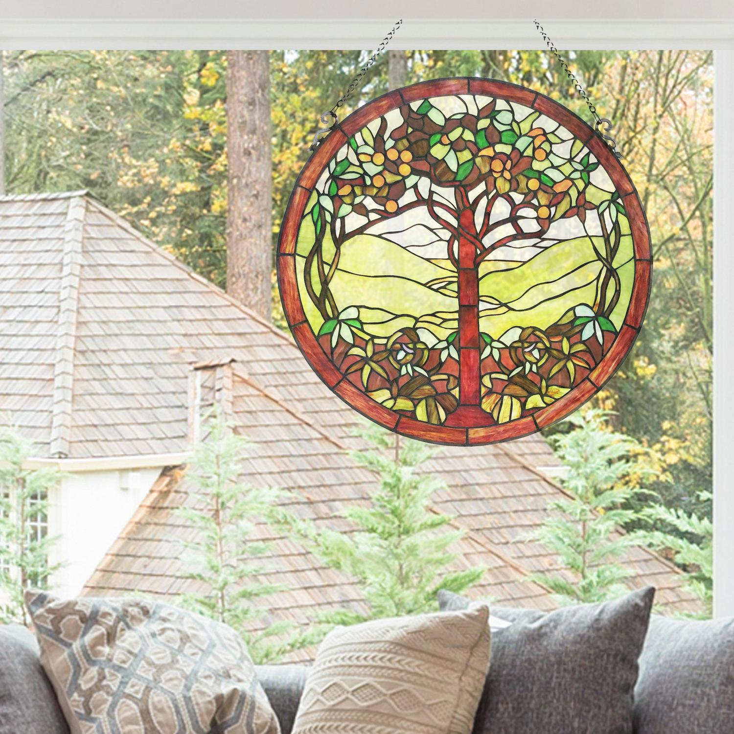 River of Goods 24 In. Tree of Life Stained Glass Window Panel in Green