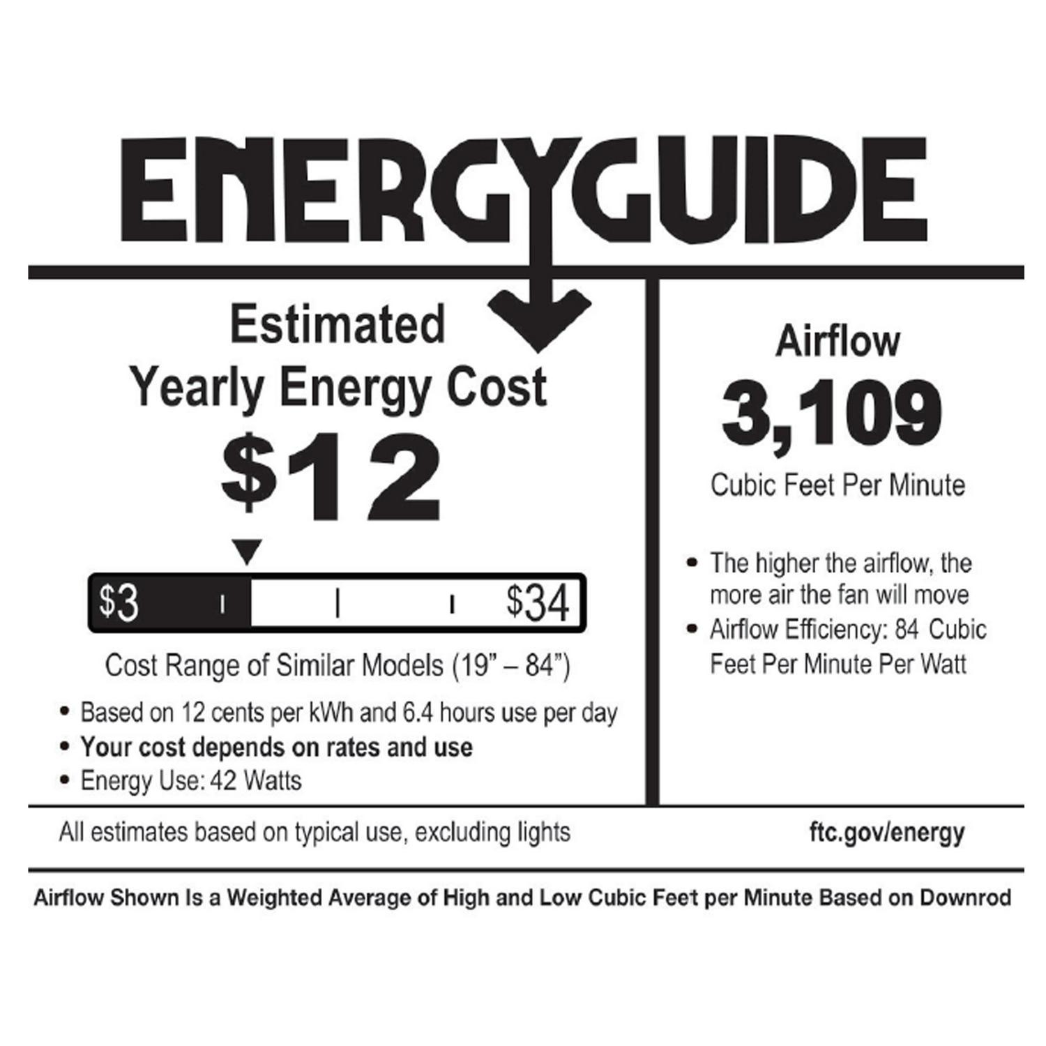 – At High Speed Airflow up to 6169 CFM, Electricity Use 62 Watts, Airflow Efficiency 183 CF Per Minute Per Watt