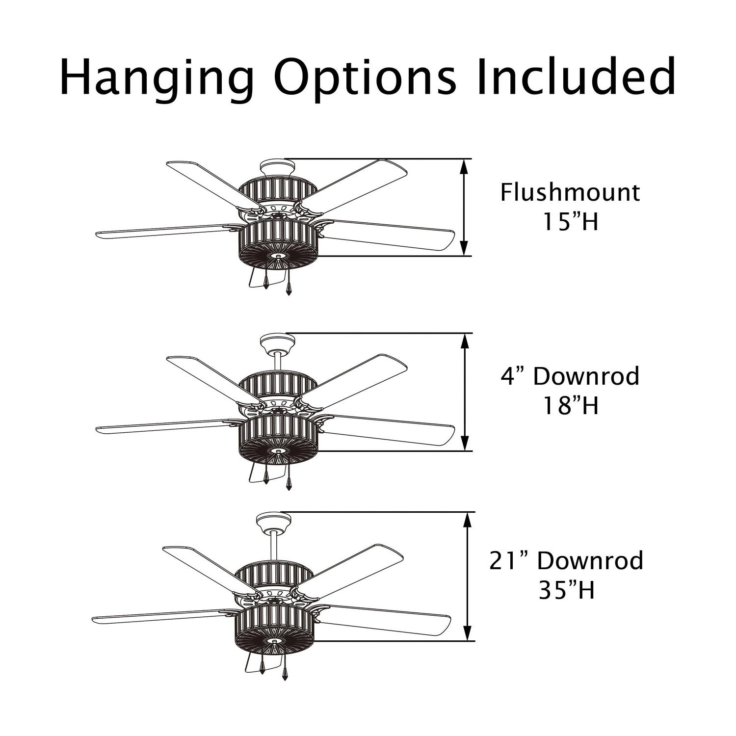– Set flush mount or 2 optional down rods are included: 4 in. or 21 in. down rods
