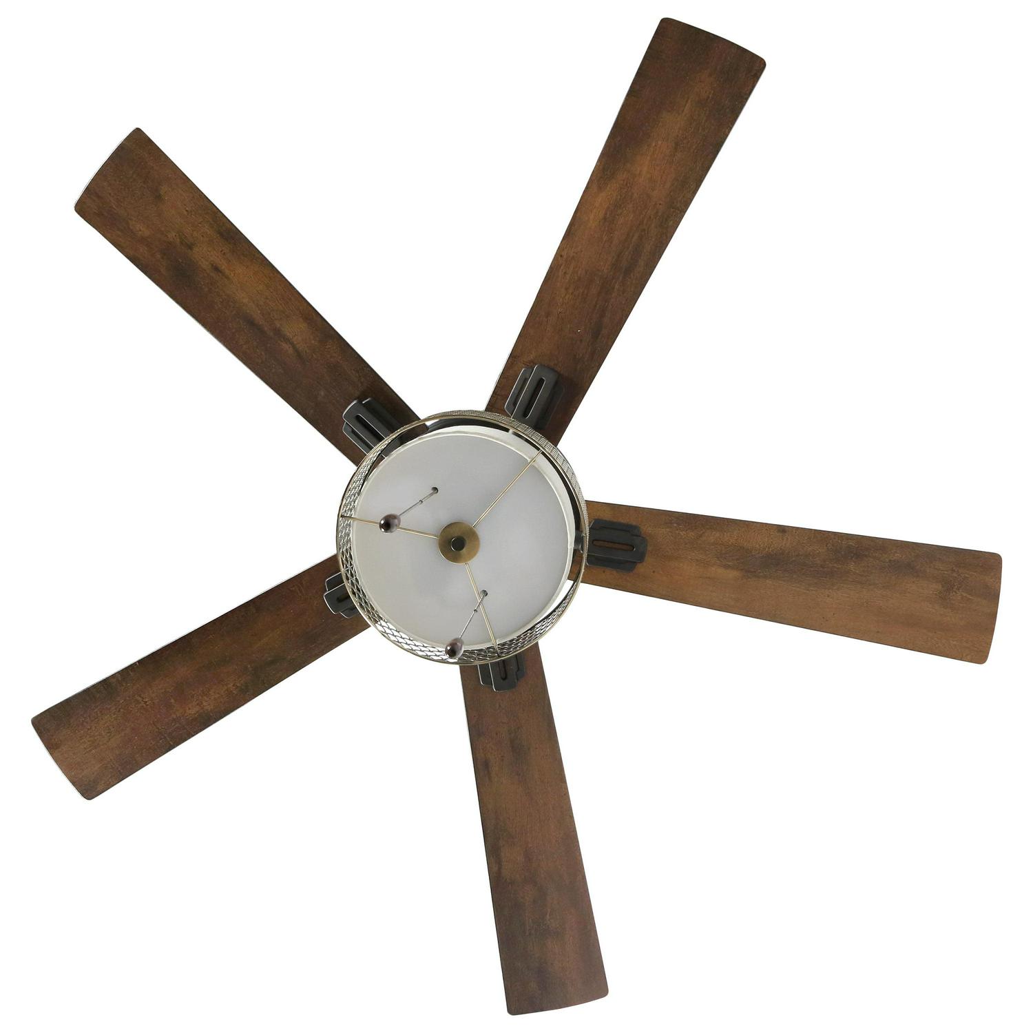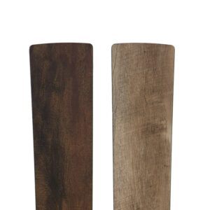 Three-speed motor with reversible fan direction Set flush mount or an optional 6″ down rod is included Reversible Woodgrain Blade Color: Distressed rich barnwood or light driftwood brown Requires two dimmable E26 LED 8W bulbs (included) Hardwired, recommend to be installed by a qualified electrician At High Speed Airflow up to 4225 CFM, Electricity Use 65 Watts, Airflow Efficiency 65 CF Per Minute Per Watt